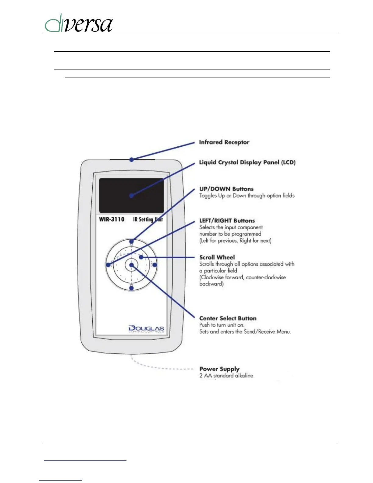 The WIR-3110 Infrared setting unit interfaces with the Diversa Occupancy sensors. The