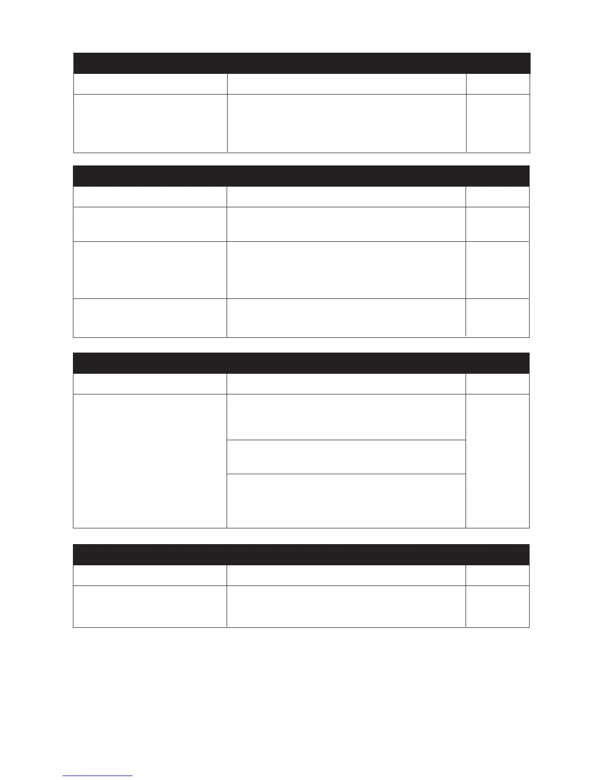 1. Power failure Check wall outlet for power, power cord, power supply