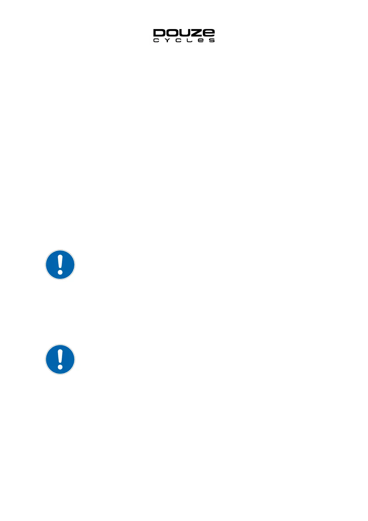 your Retailer or a DOUZE Cycles Technical Centre in order to carry out such work. Your