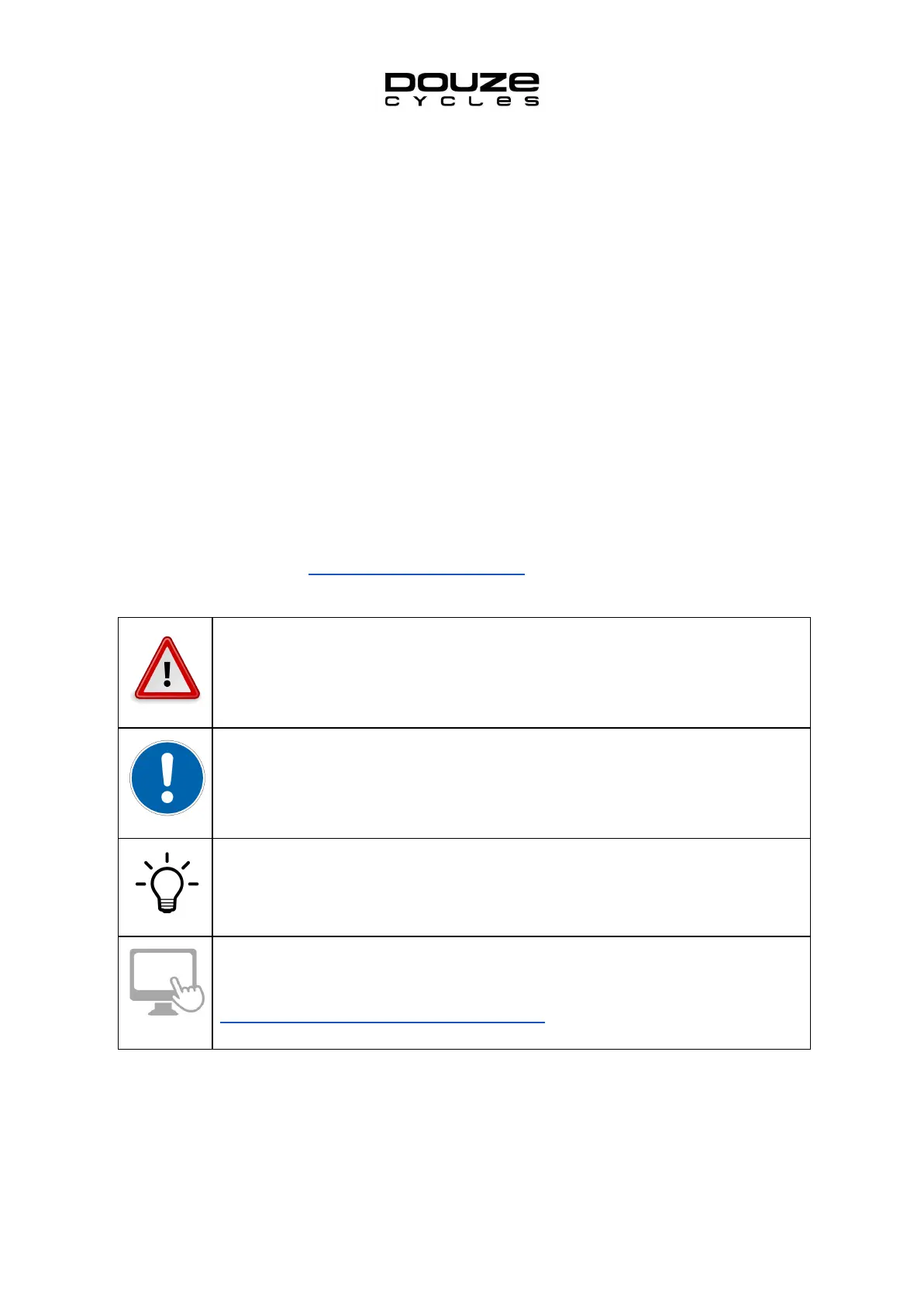 your DOUZE Cycles Technical Centre has provided you with the instruction manual
