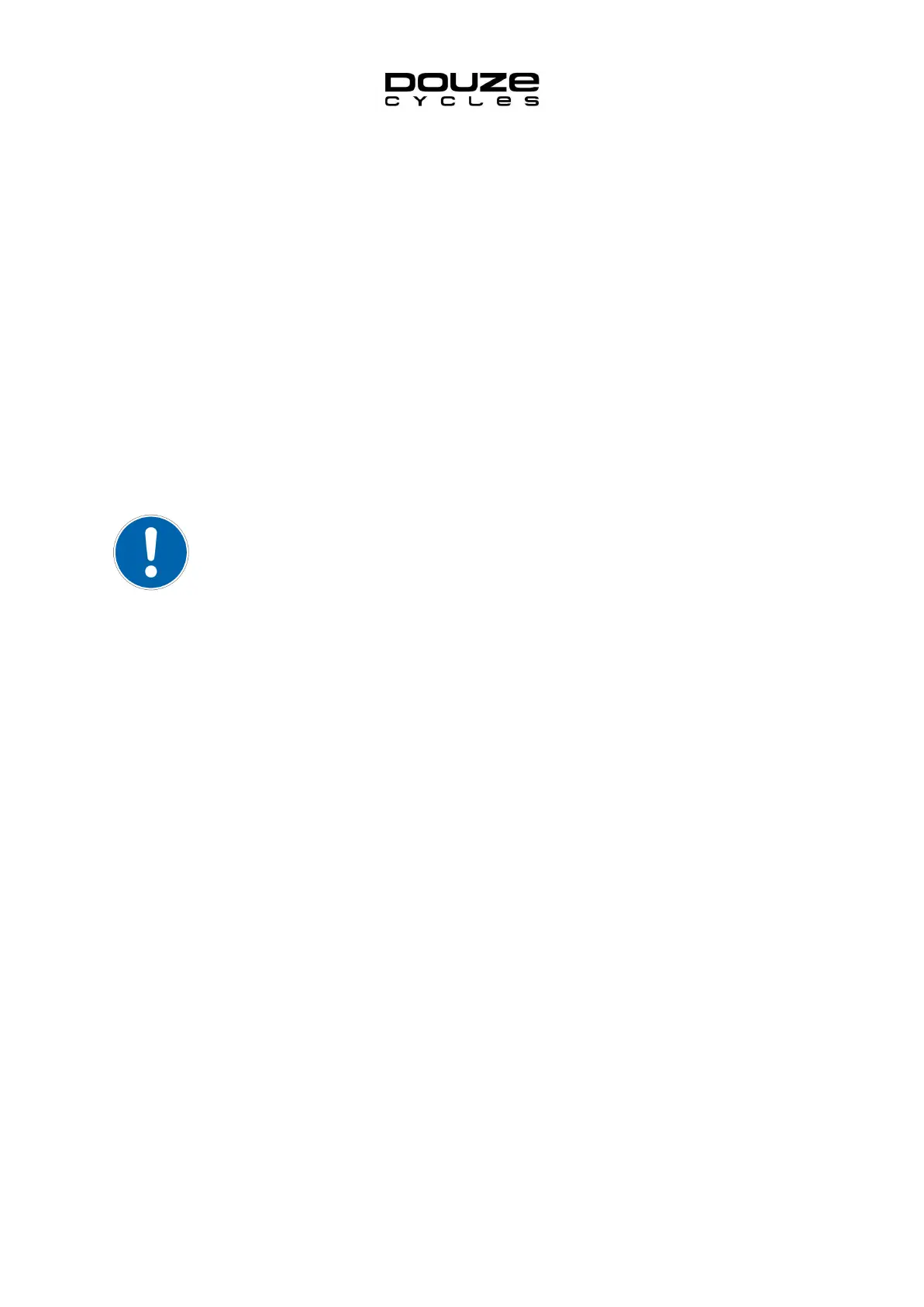 shape for optimal comfort and safety. Your Retailer or DOUZE Cycles Technical Centre will
