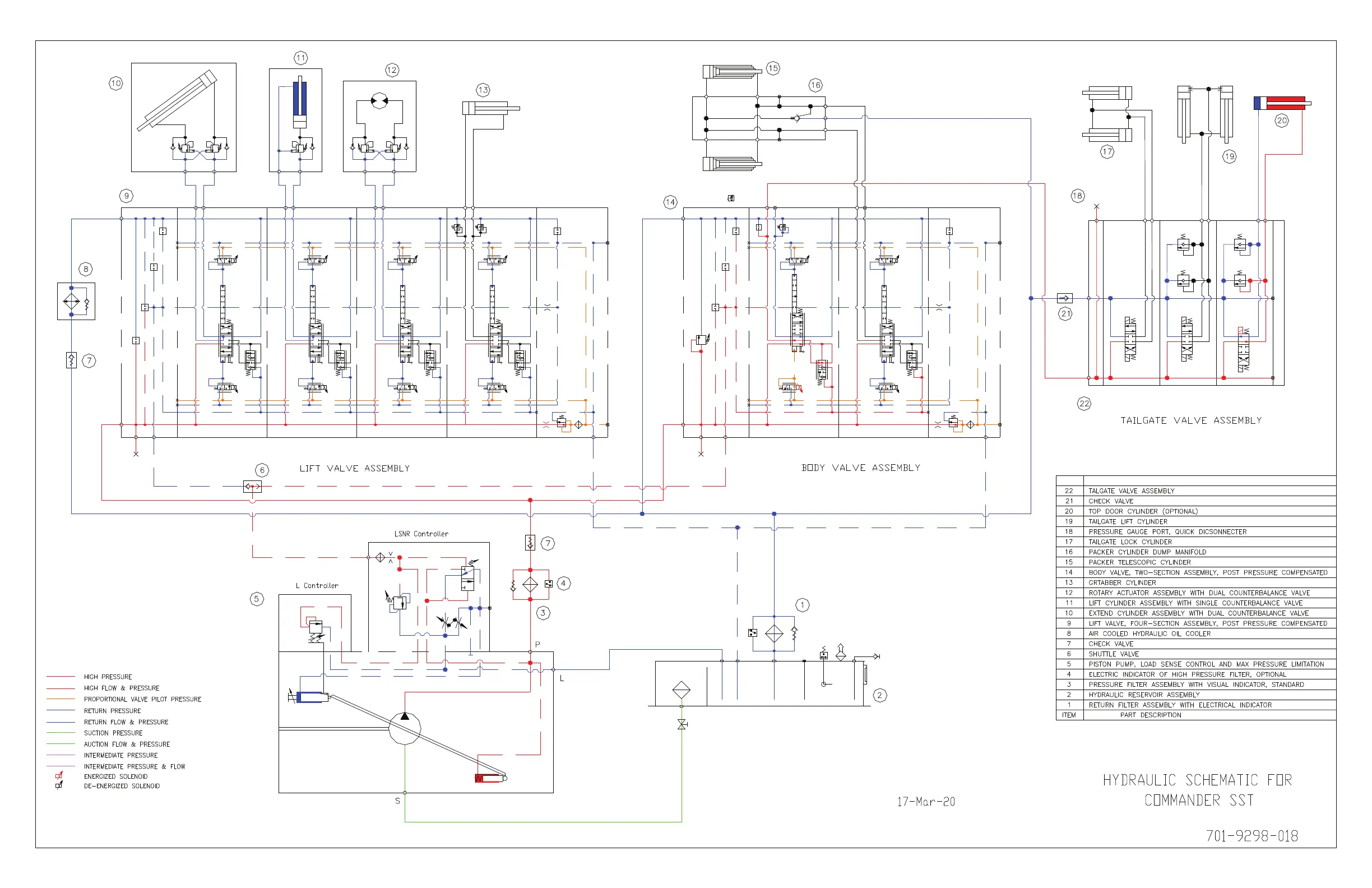 Dover HEIL Command-SST - Hydraulic Schematic, Top Door Open - 701-9298-018