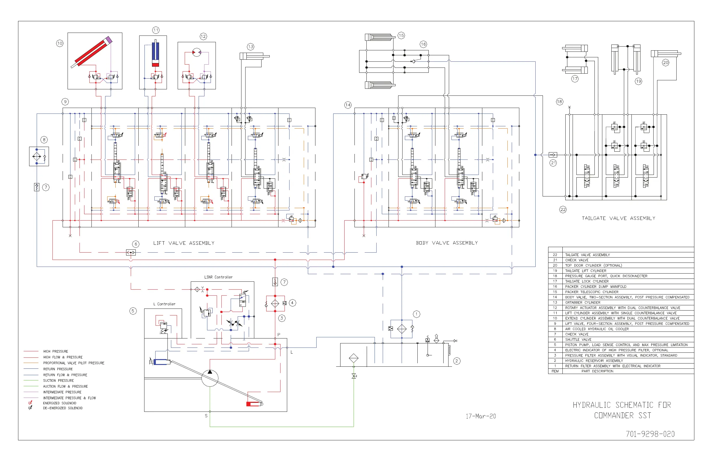 Dover HEIL Command-SST - Hydraulic Schematic, Arm in up Dump - 701-9298-020