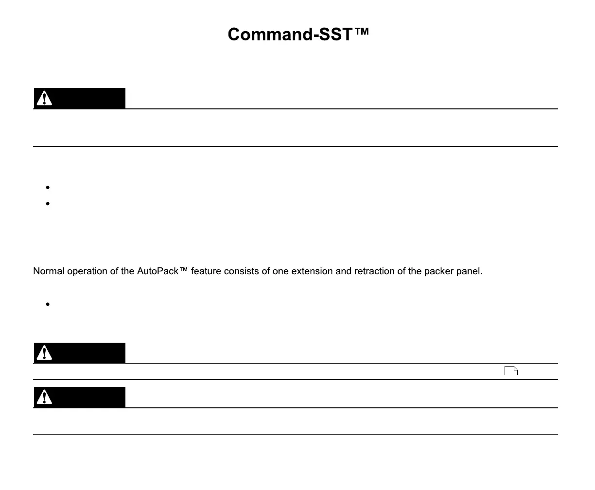 the body or hopper. Make sure no one is inside the hopper or body before you close the door and begin a packer function.