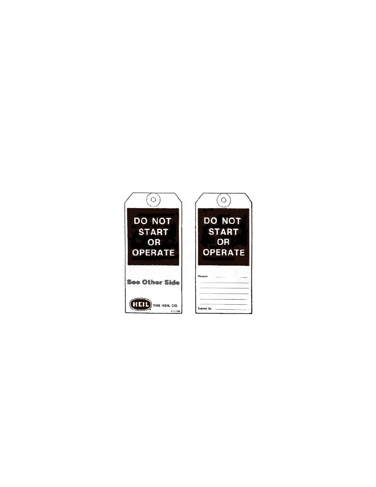NOTE: You can order lock-out tags (Part No. 212-1586) through your Heil Dealer or through Heil.