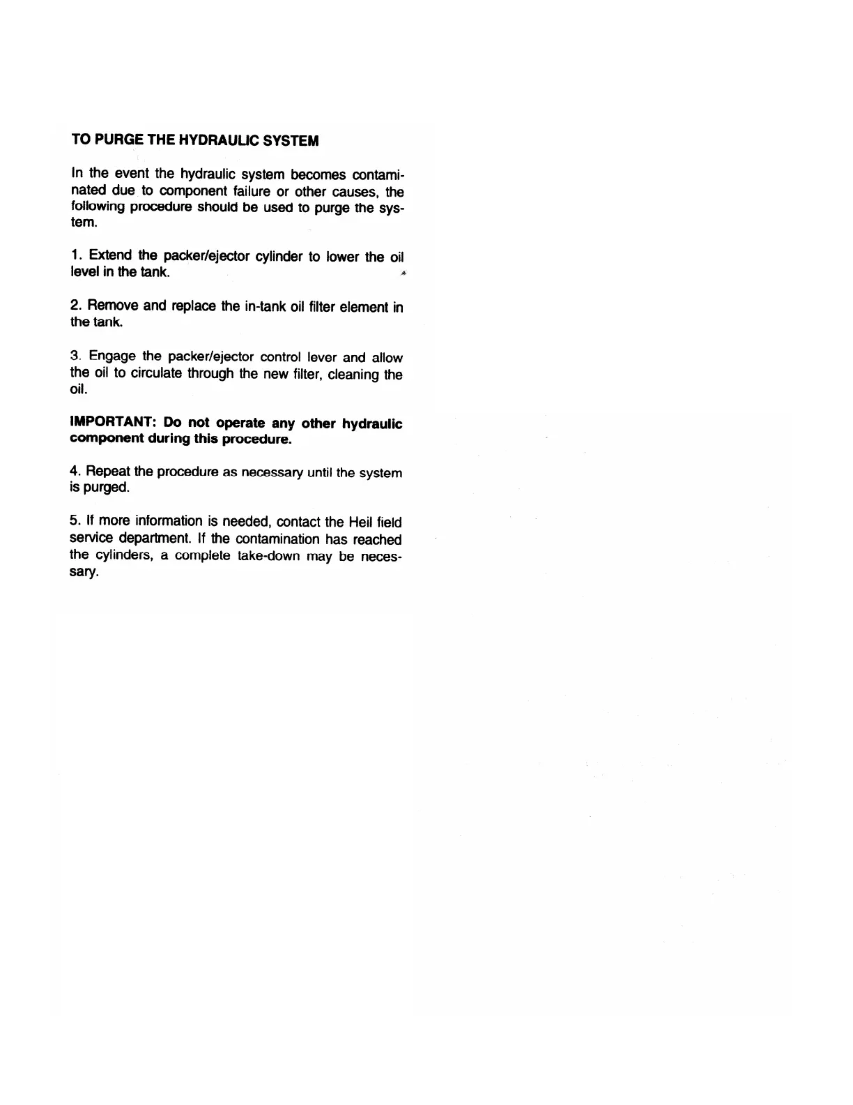 Dover HEIL DuraPack 5000 - Purge the Hydraulic System