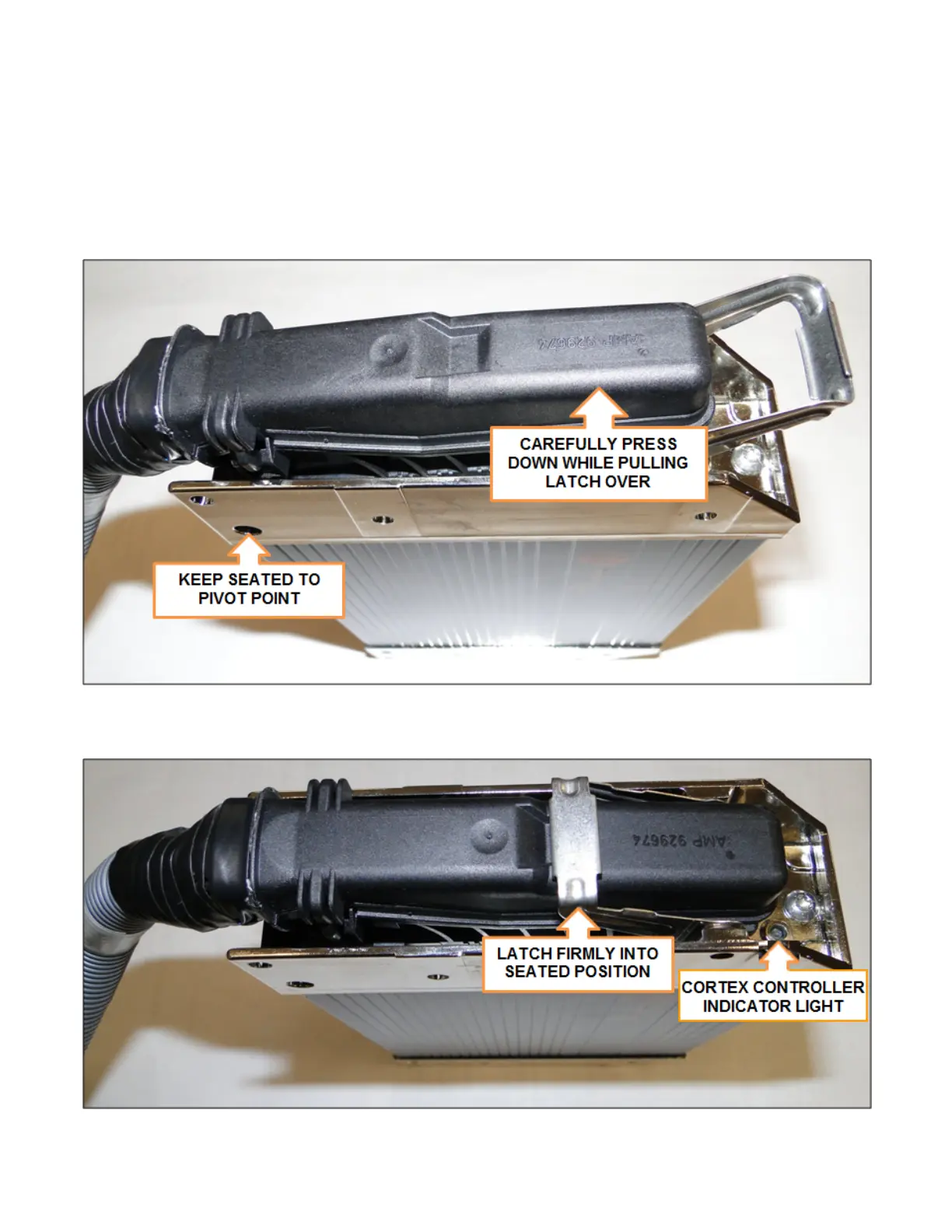 2. Latch cable to controller until latch is secure and flush with rear of cable connector. See the figure below.