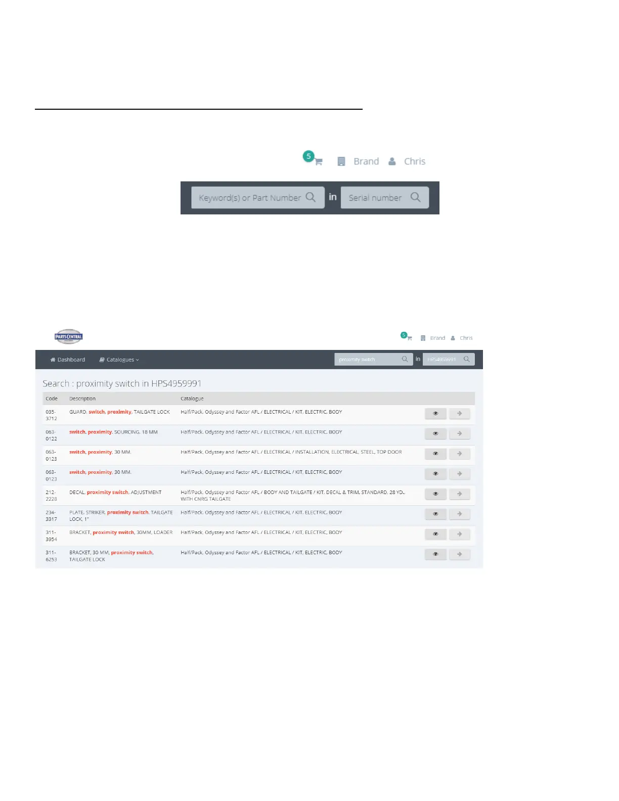 you identify the needed part. Alternatively, you can select the eye icon on the right to see part specifics (including any notes)