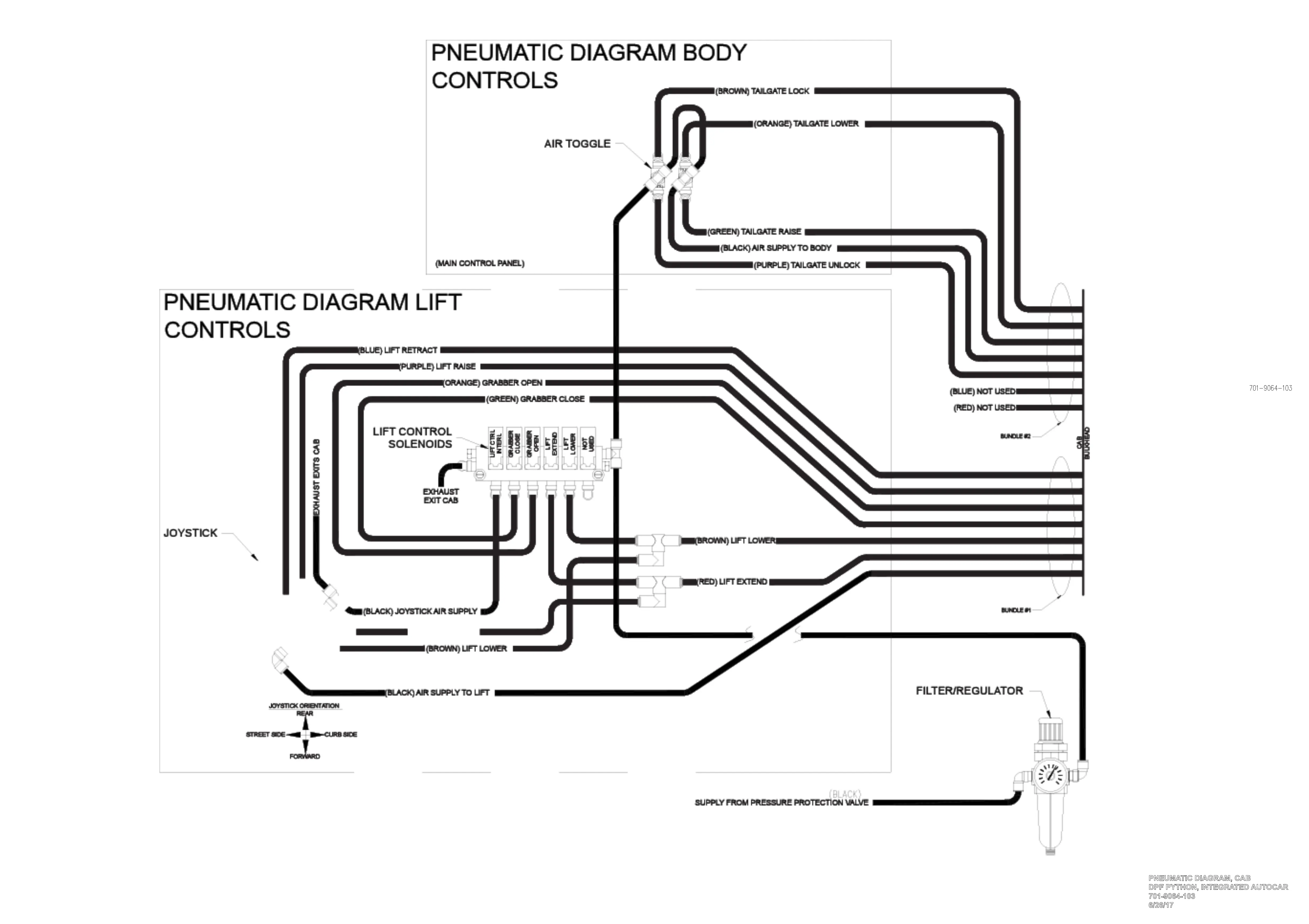 Dover HEIL DuraPack Python - Cab Pneumatic Schematic, Power of One - 701-9064-103