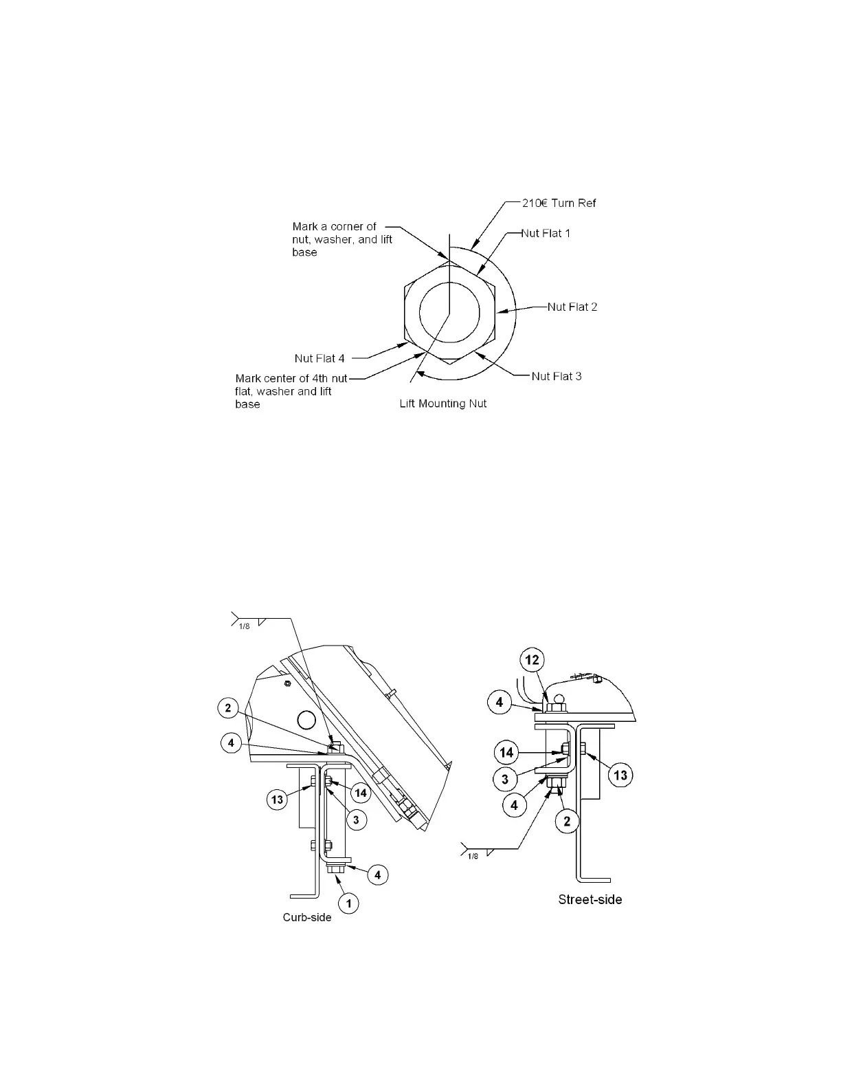 7. Use a wrench and extension handle to turn the nut's marked corner to the second mark at the center of the fourth nut