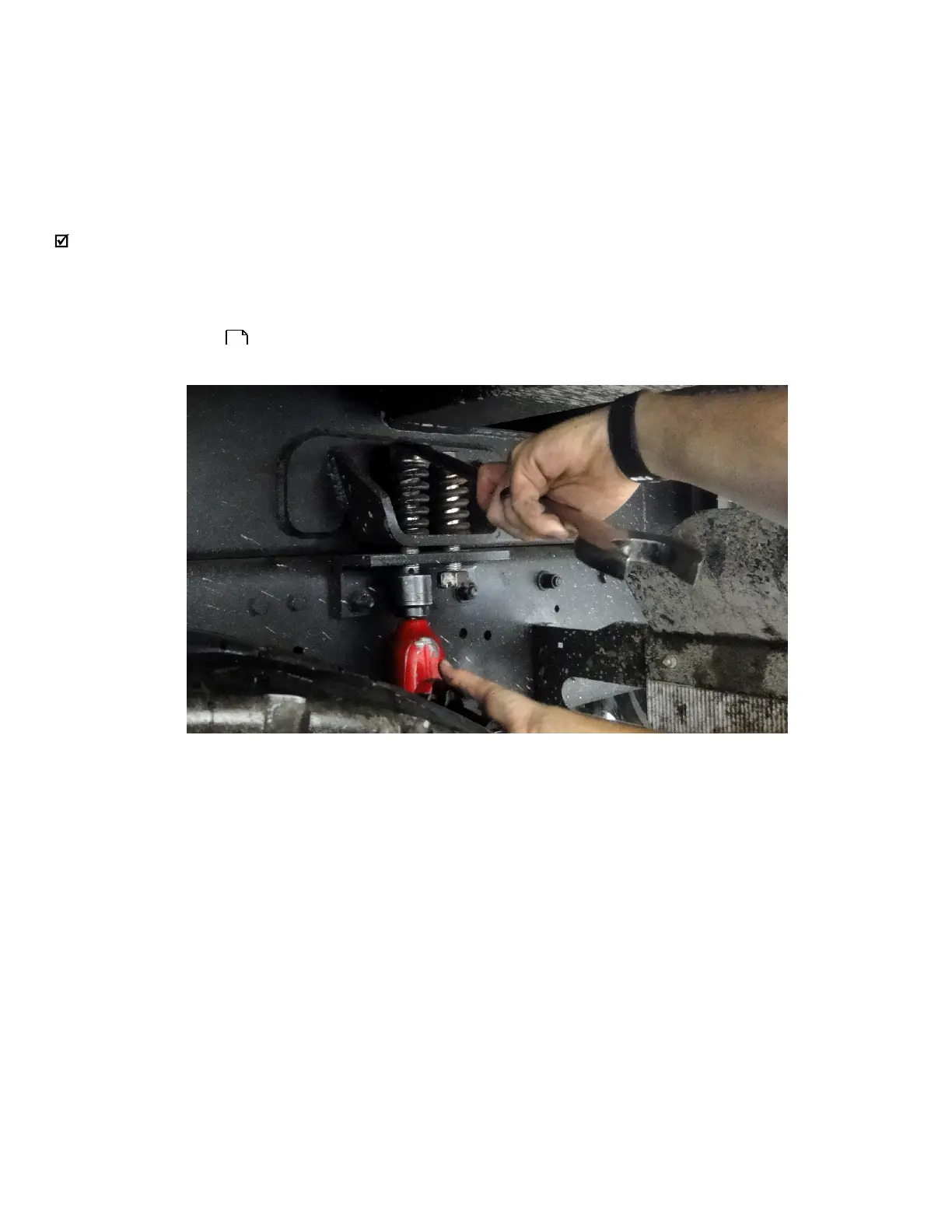 2. Make sure that body is on firm, level ground with the Parking Brake engaged and holding and place chocks on the