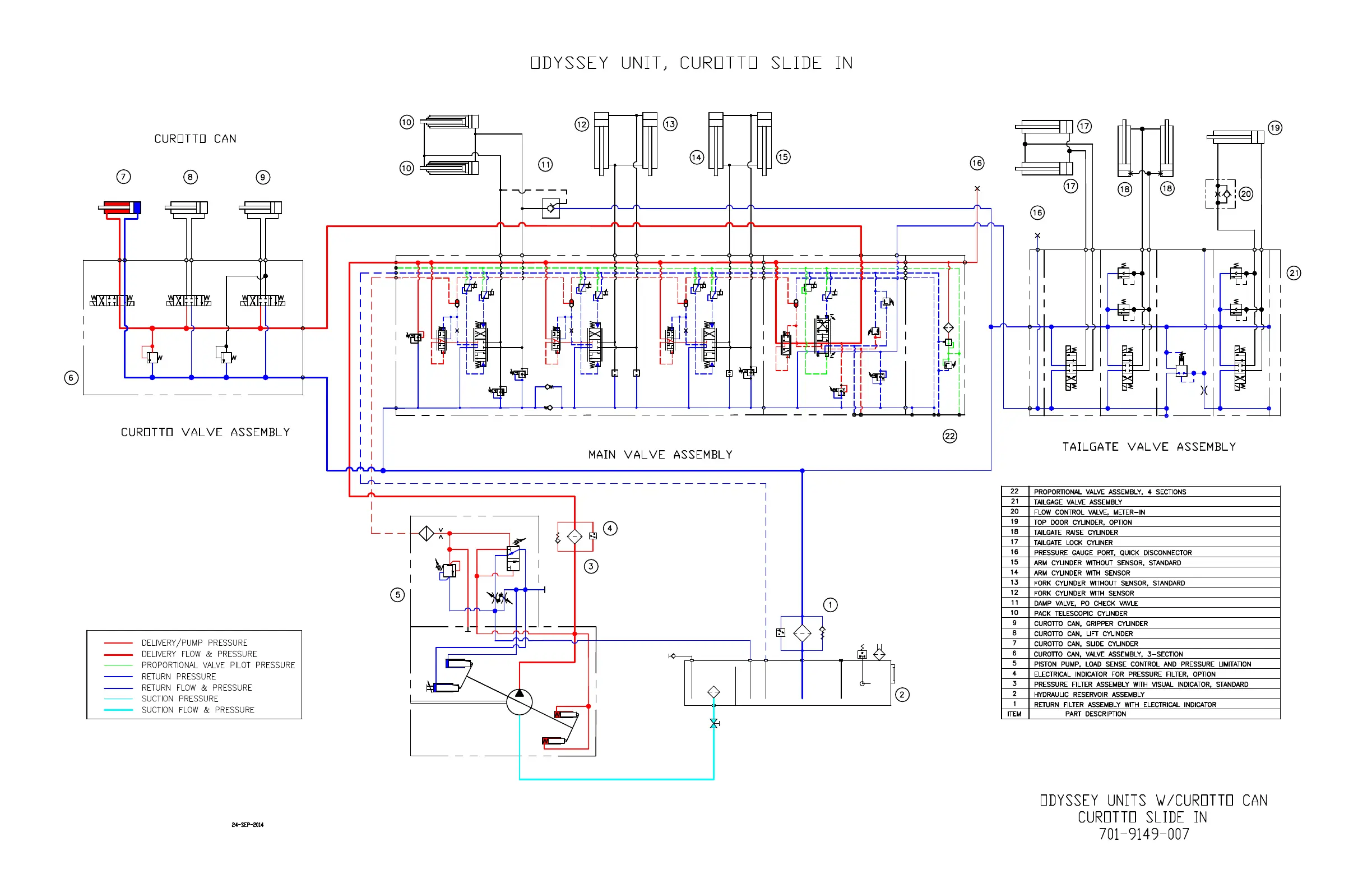 Dover HEIL Half/Pack Factor AFL - Odyssey Hydraulic Flow Chart - Curotto Lift Raise - 701-9149-004
