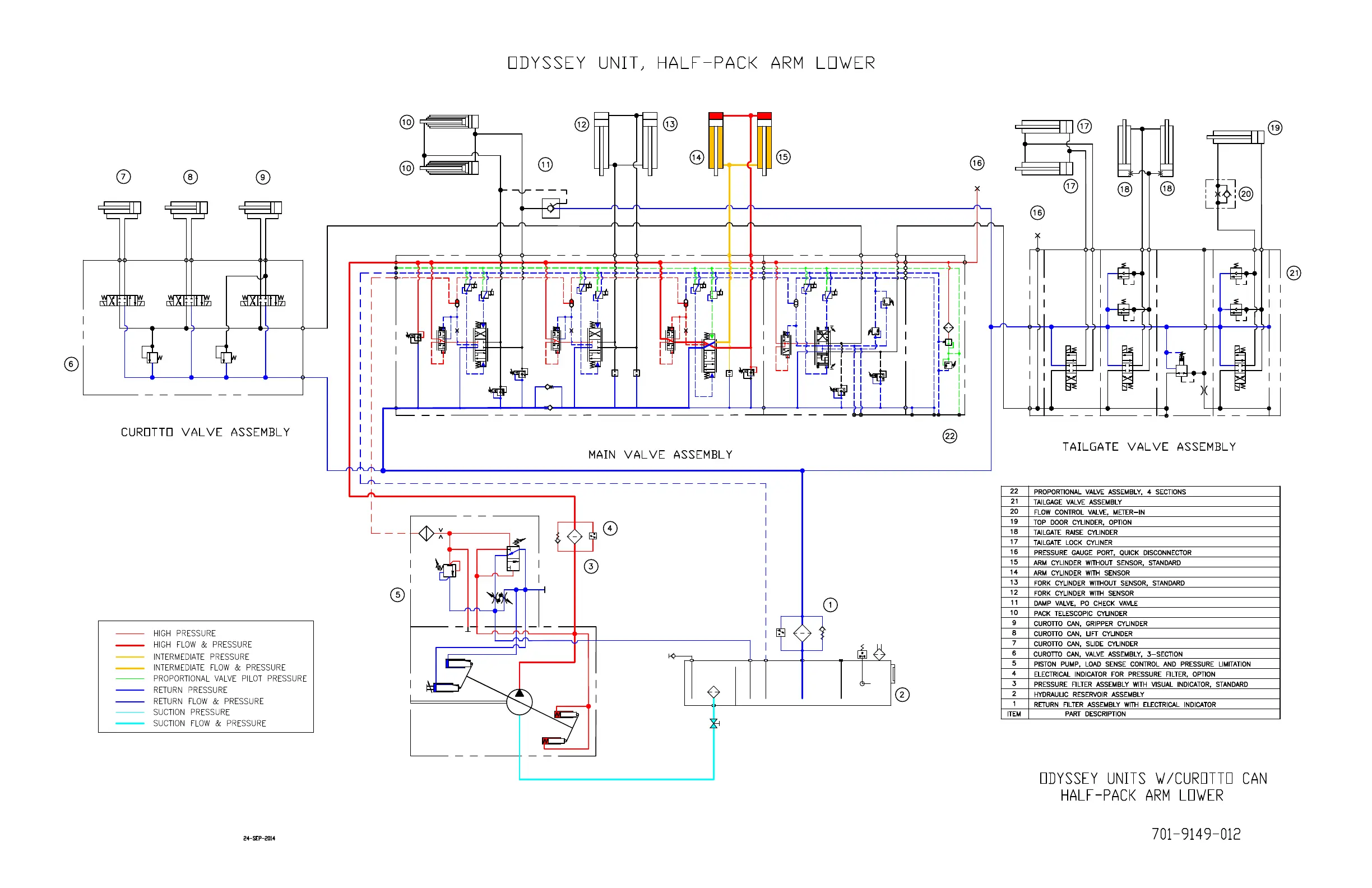 Dover HEIL Half/Pack Factor AFL - Odyssey Hydraulic Flow Chart - Curotto Lift Lower and Slide out - 701-9149-009