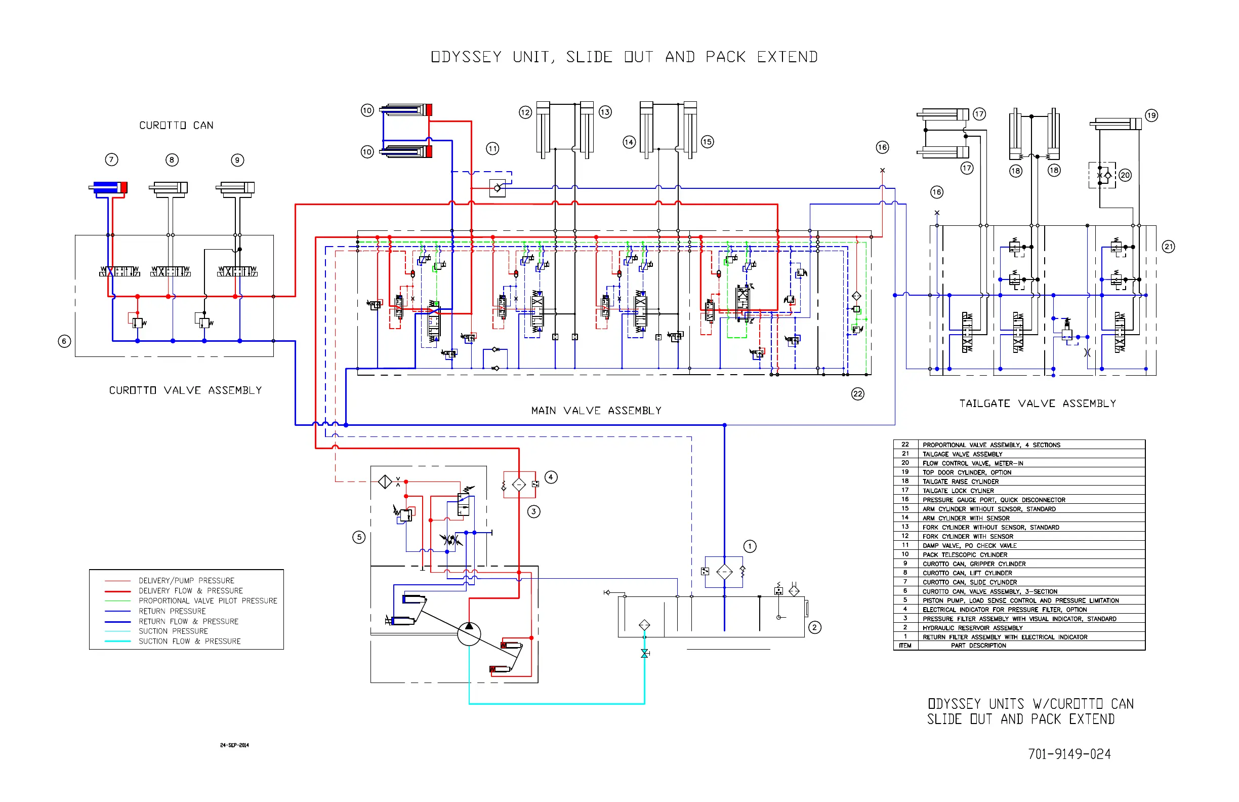 Dover HEIL Half/Pack Factor AFL - Odyssey Hydraulic Flow Chart - Tailgate Unlock - 701-9149-021
