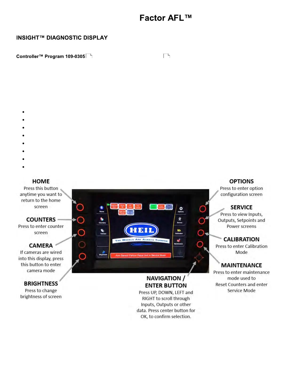 The Heil InSight Display is the information center for the operator and troubleshooting tool for the service mechanic. The