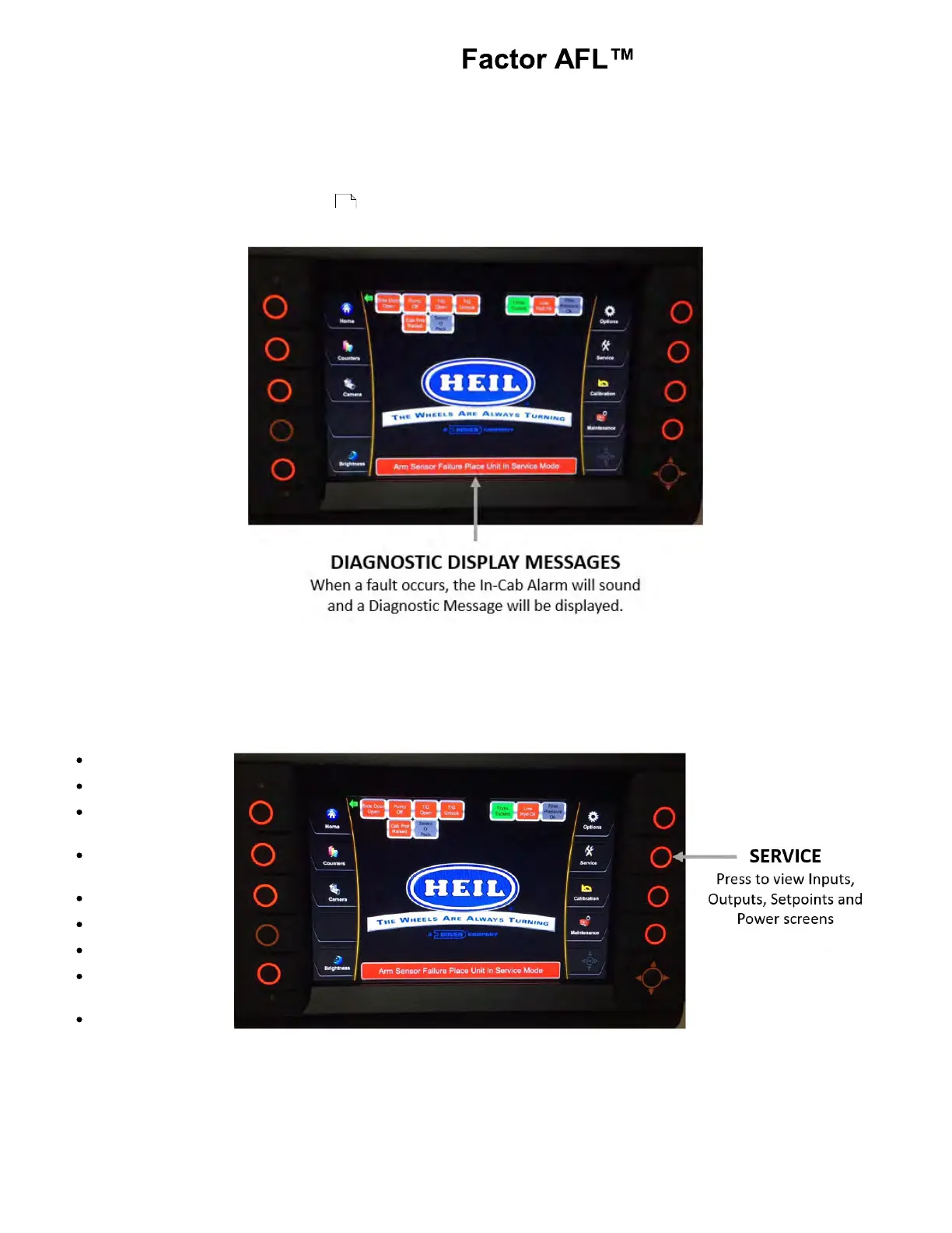 viewed anytime the key switch is on or the truck is running. Nothing on these screens can be adjusted and are view only.