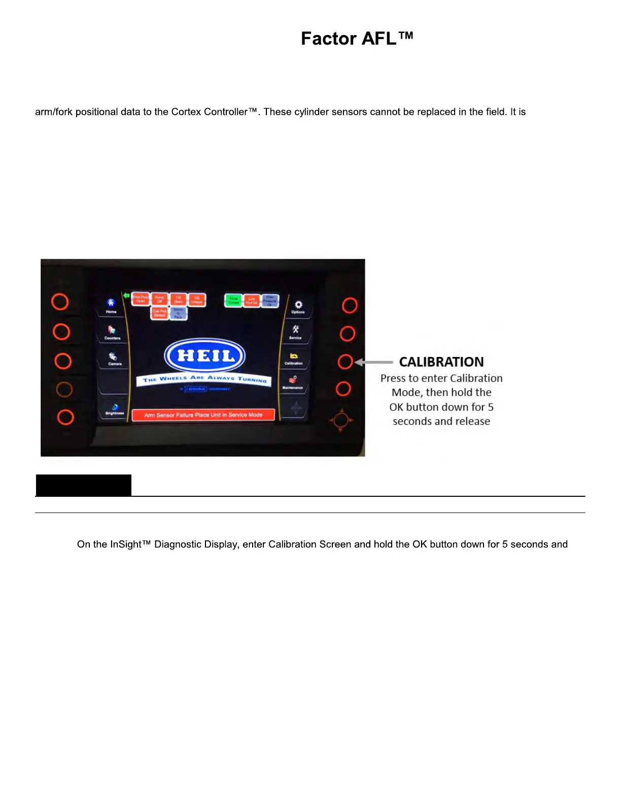 Cylinder Sensors Calibration may be needed when a cylinder with sensor or the arc sensor for the packer is changed and