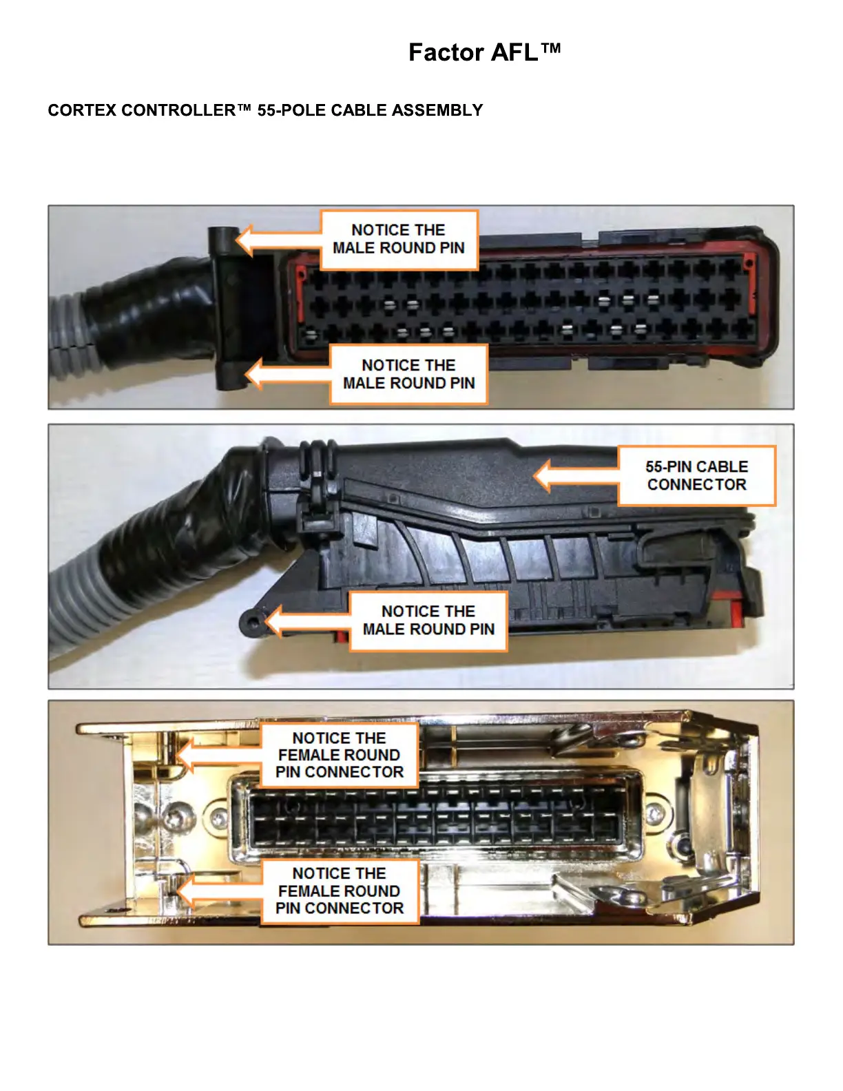 See the figure below to identify the 55-Pole Cable Connector parts.