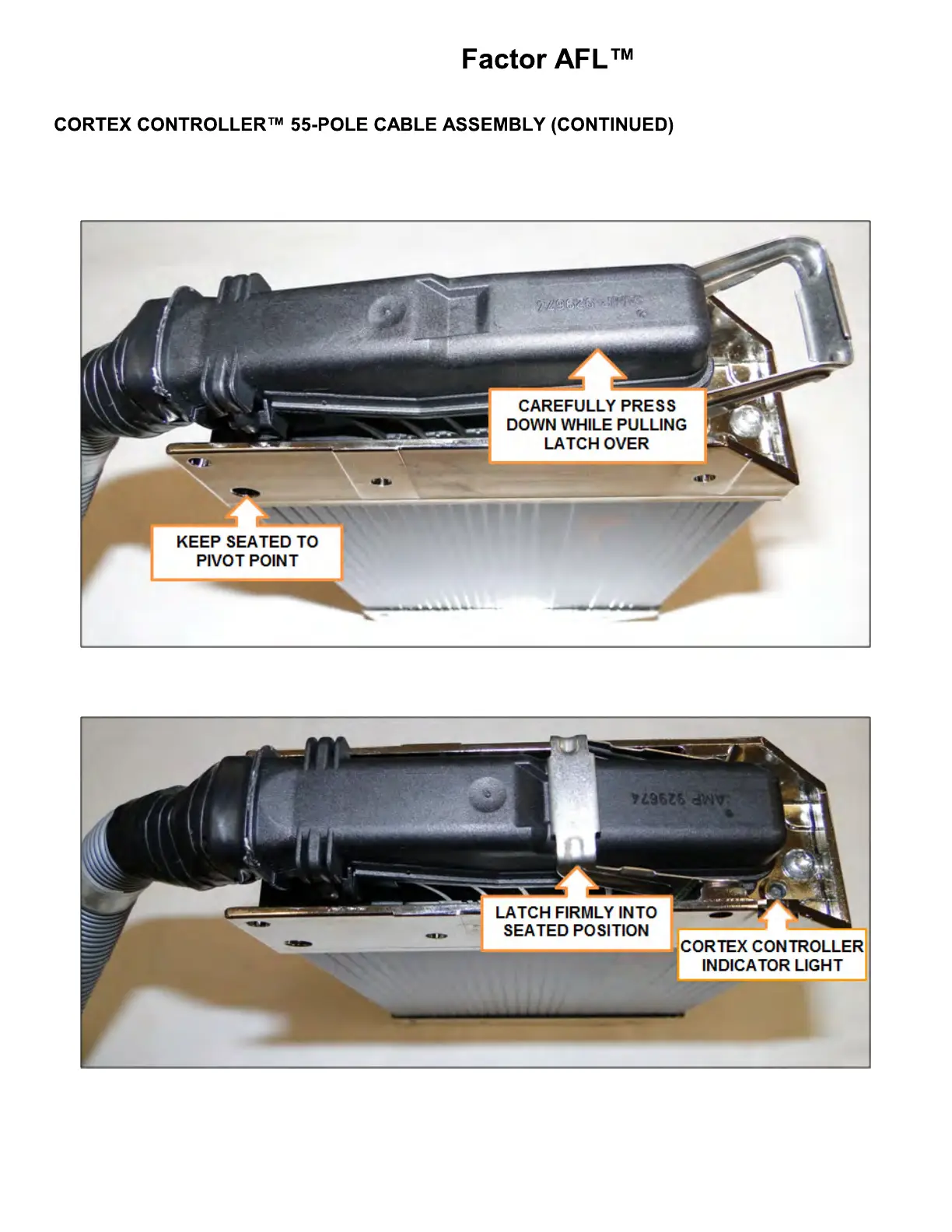 2. Latch cable to controller until latch is secure and flush with rear of cable connector. See the figure below.