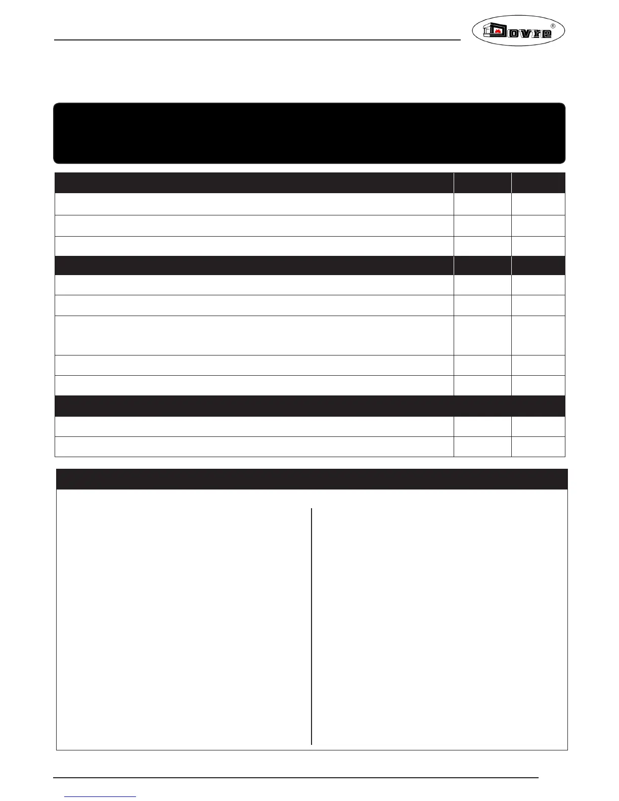 Appliance Commissioning Checklist