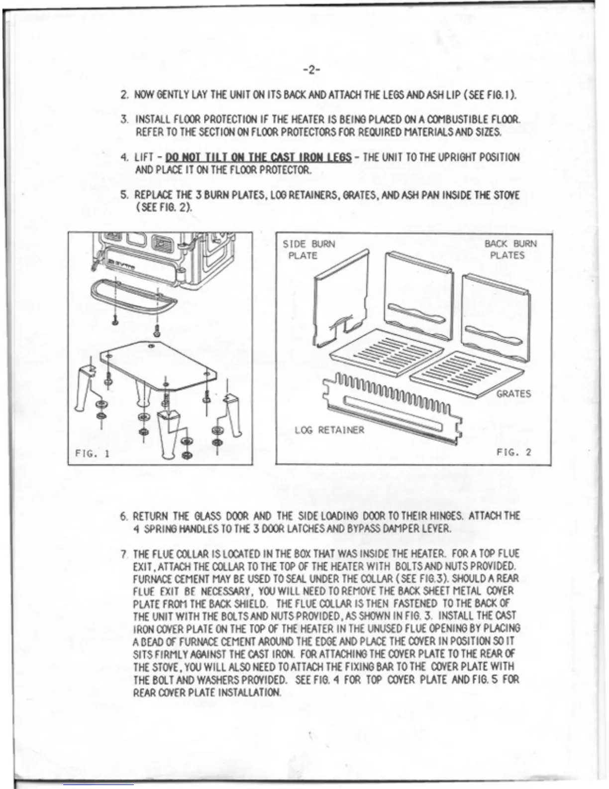2. NOW GENTLY LAY THE UNIT ON ITS BACK AND ATTACH THE LEGS AND ASH LIP (SEE FIG.!).