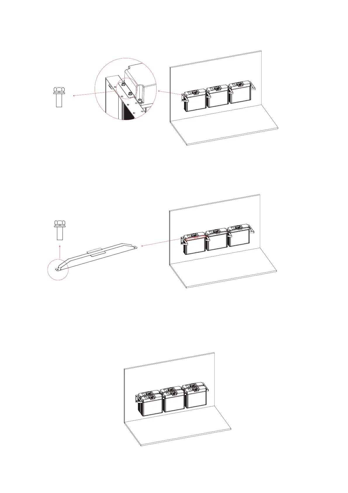 Place the outside battery on the battery holder and lock it with M5*16 bolts, torque is 4NM.