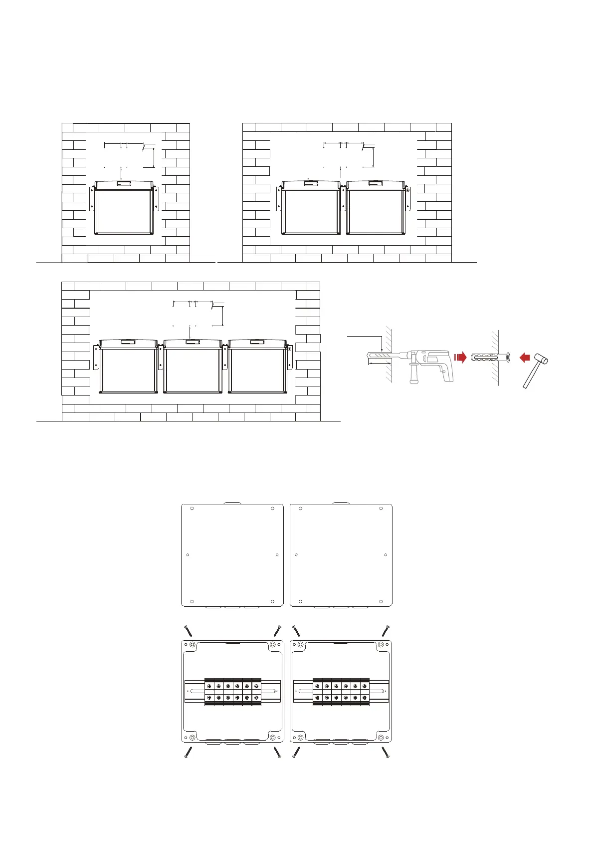 Use M4*30 screws to fix the Junction box to the wall through the 8 fixing holes at the bottom of