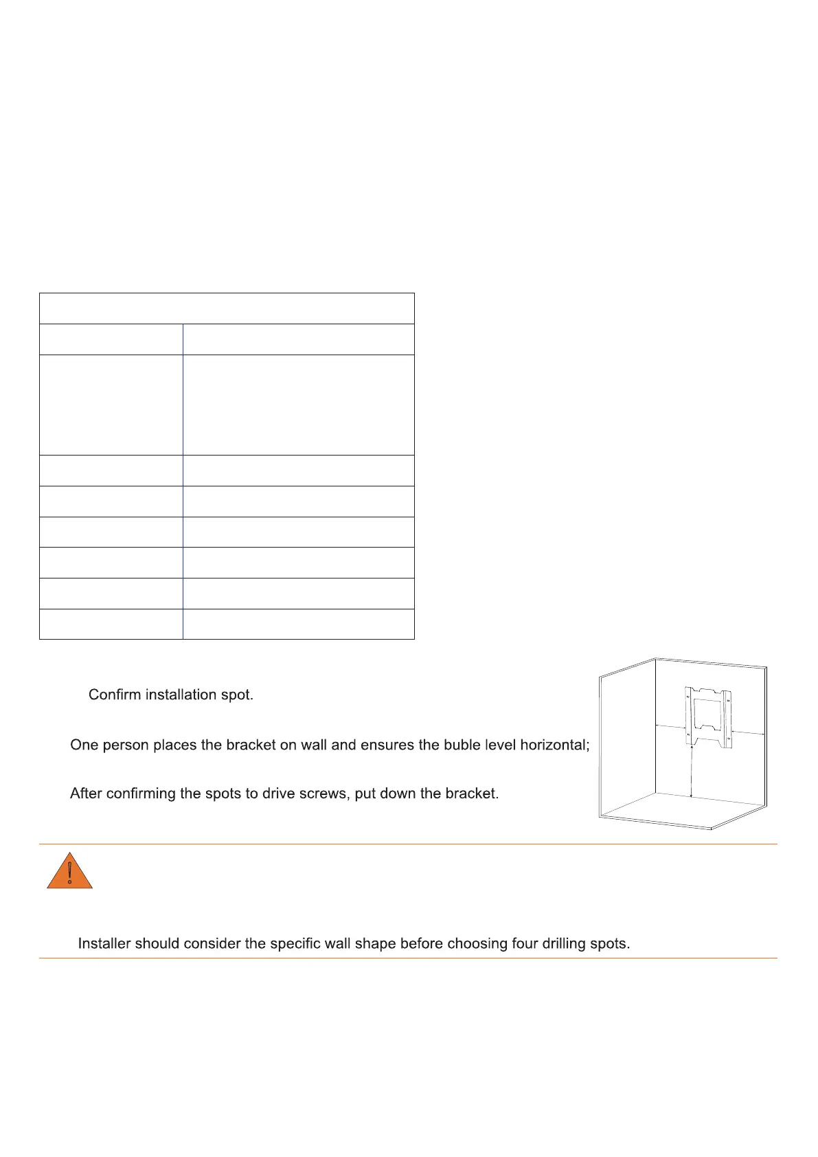 • The weight capacity of wall should exceed 4 times weight of battery.