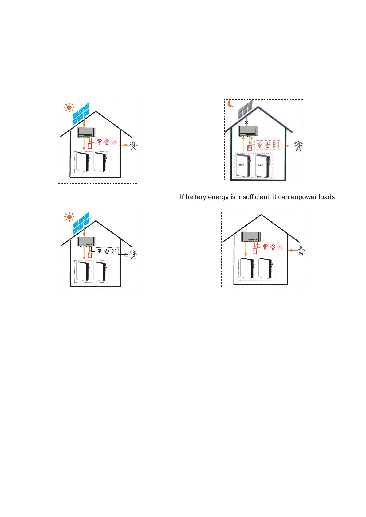 When grid falls, battery and PV can power loads. Battery can be charged by grid. Users are suggested to