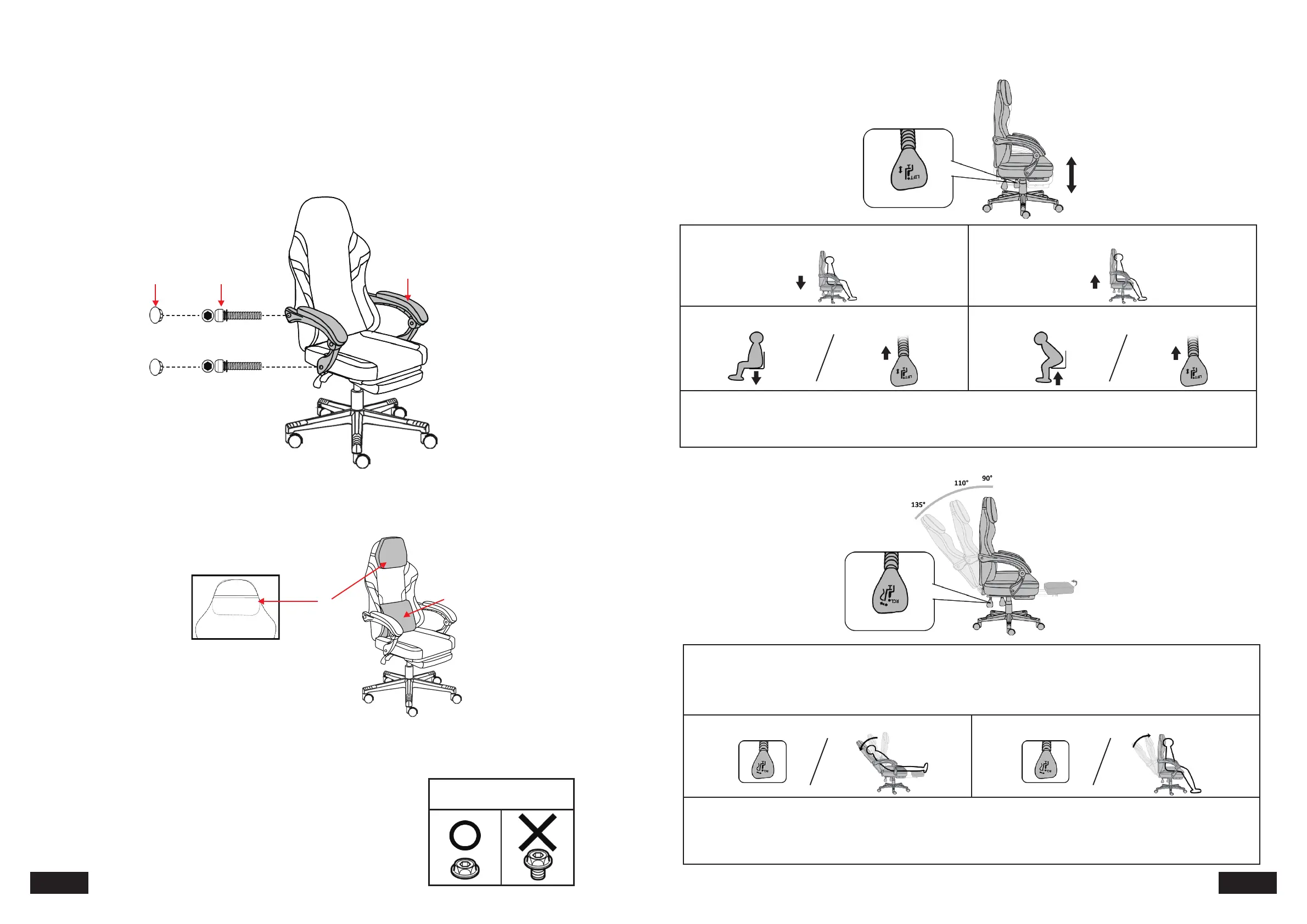 ※ Please note the strength of screwing, if the backrest does not tip over, the armrest screws