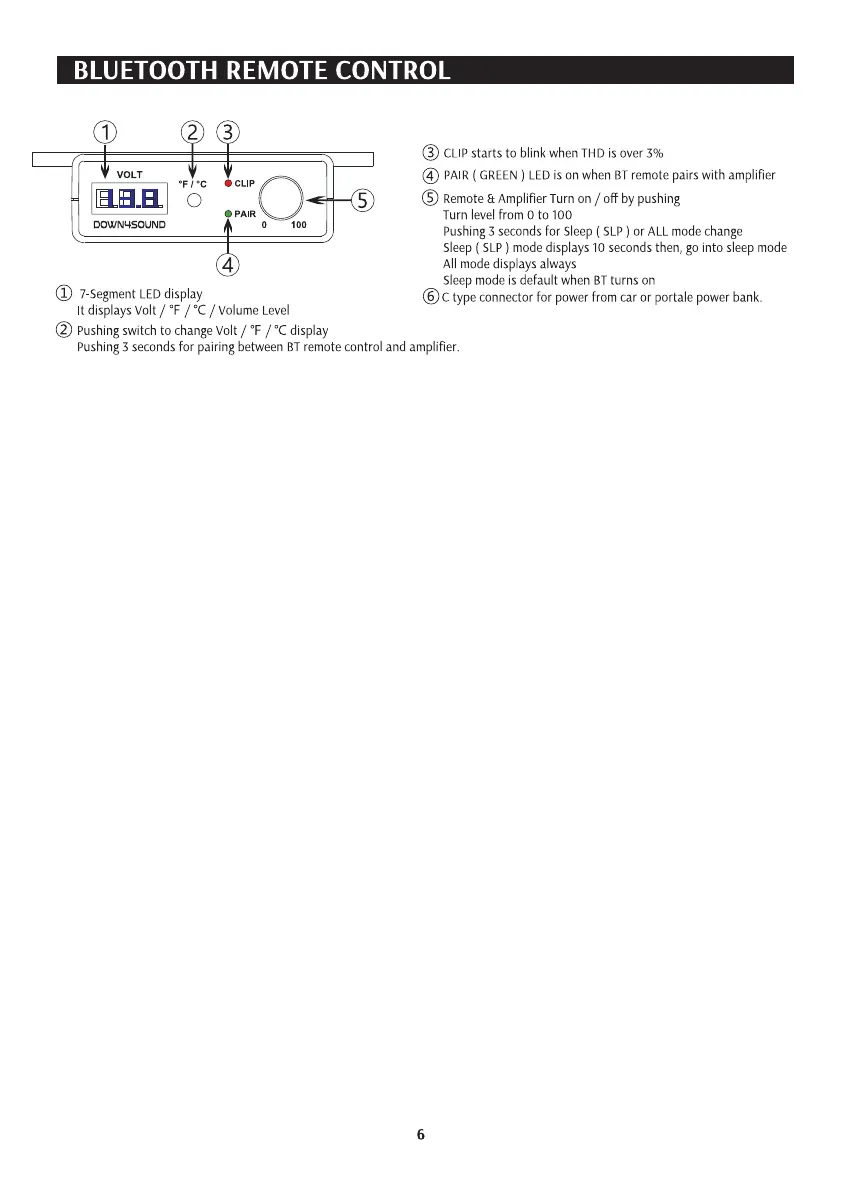 1) Master amp is power connected ( Slave should be disconnected ), then pair with Bluetooth remote.