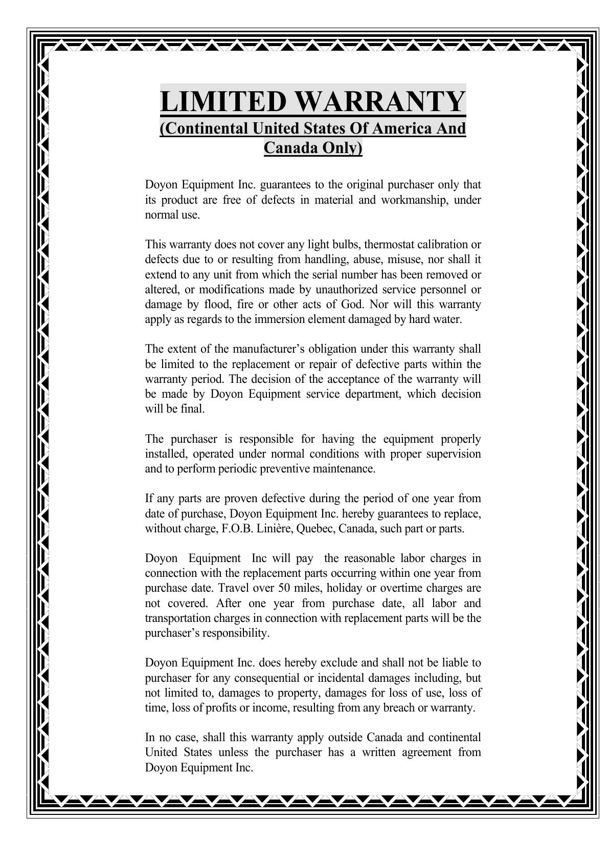date of purchase, Doyon Equipment Inc. hereby guarantees to replace,