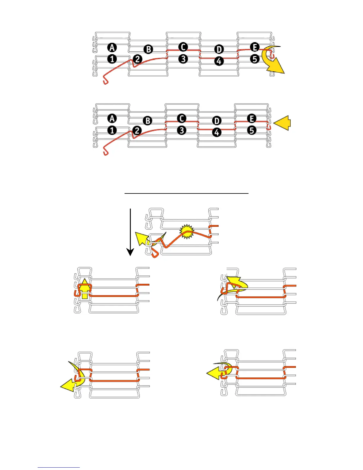 F – CONNECTEZ LE BOUT DE LA MAILLE AU CROCHET DE L’EXTRÉMITÉ.