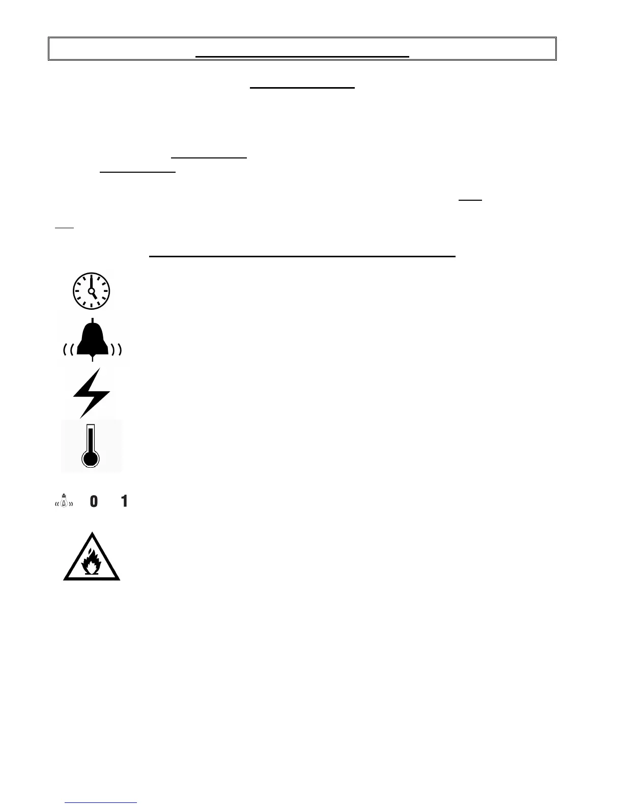 FRONT CONTROL PANEL SYMBOL SIGNIFICATION
