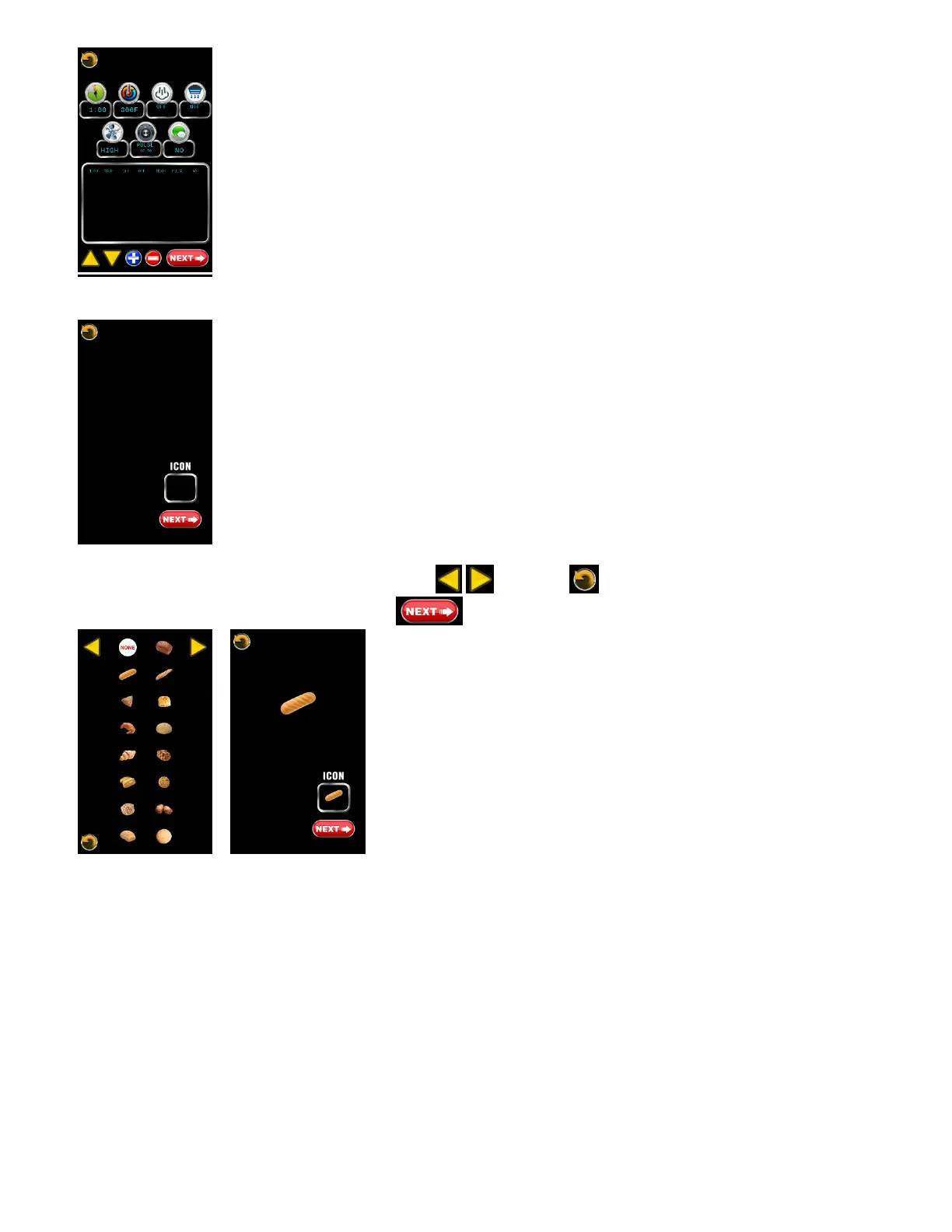 To select a food icon from the library touch ICON