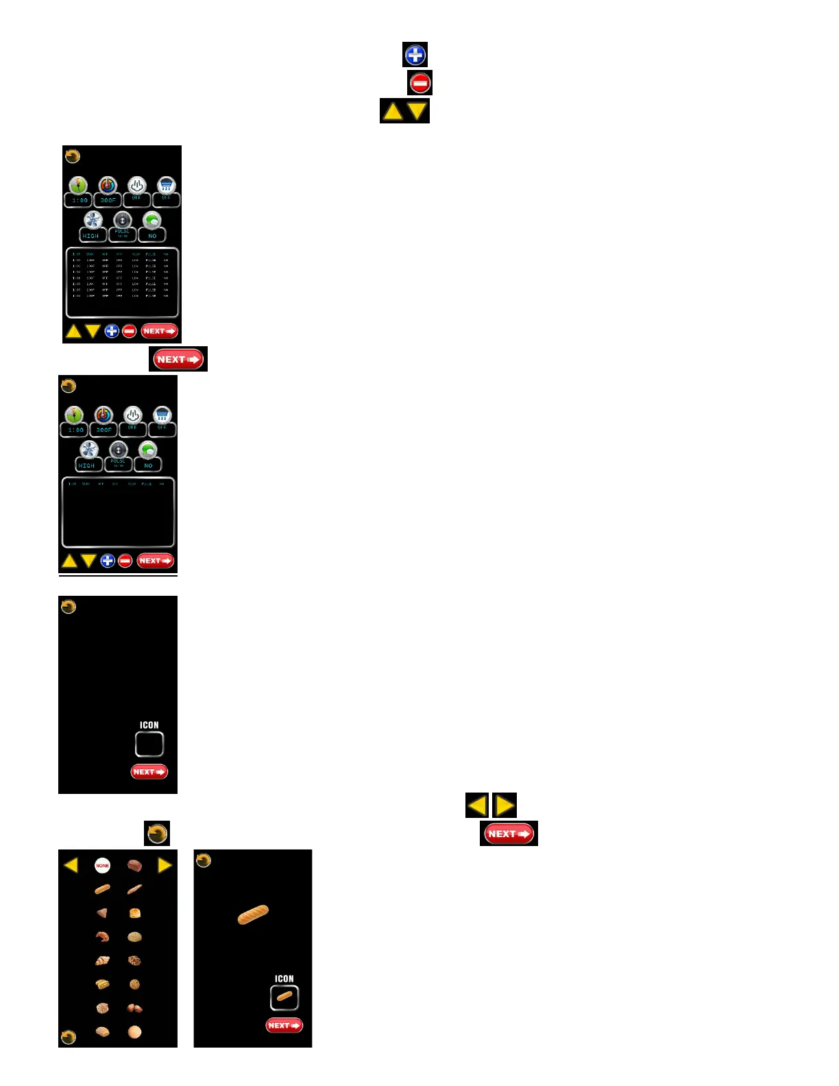 Sélectionner un icone dans la librairie en utilisent les flèches et pour revenir à l’écran précédent