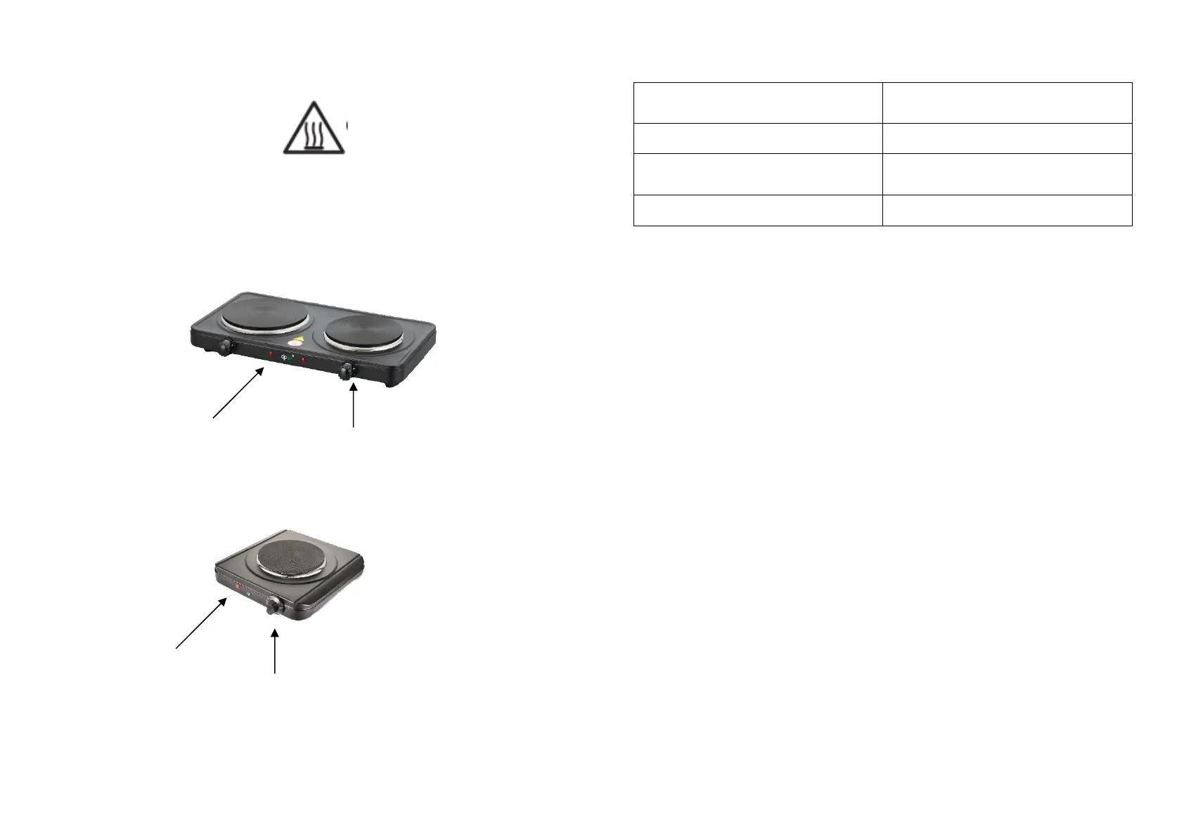 The cooking plates are equipped with a 5-step switch. The numbers and