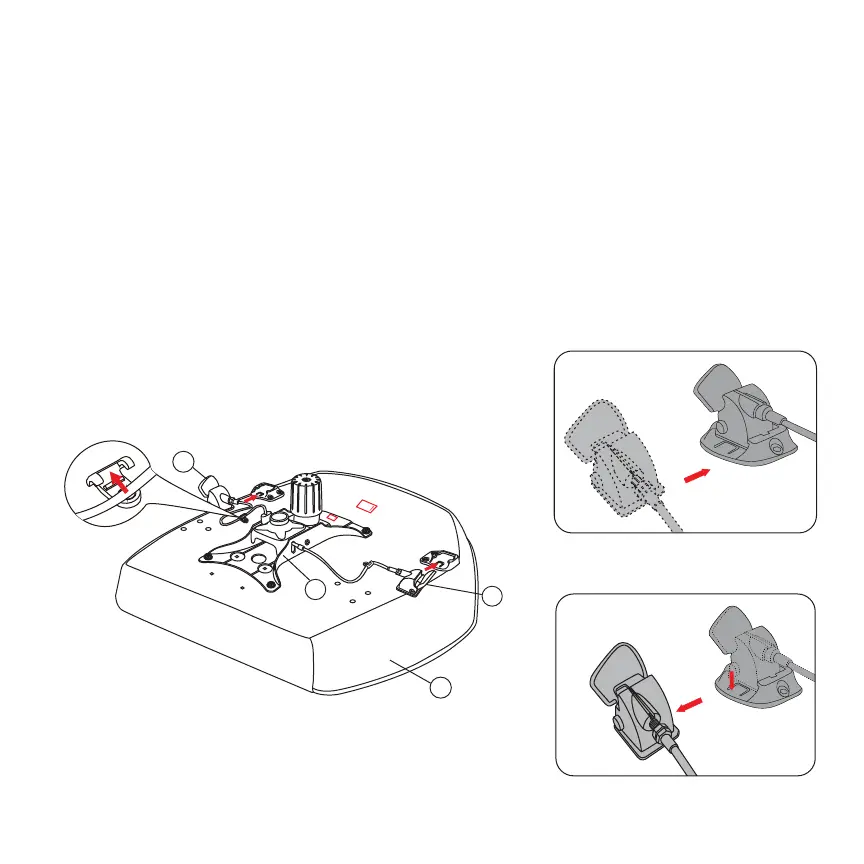 *Note: Fix the cable for the seat plate into the plastic clips attached to the bottom of the seat cushion.