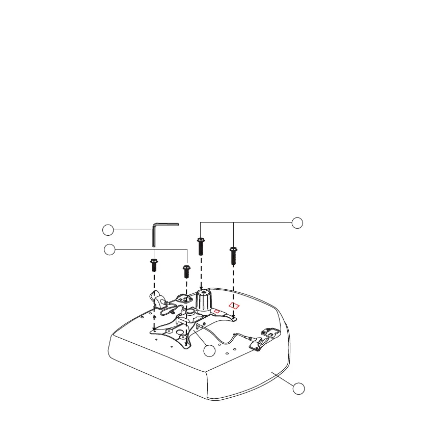 utilisant les grosses vis de 32 mm (J) dans les trous avant de la plaque de siège (D) et les grosses vis de 25 mm (I) dans les trous arrière