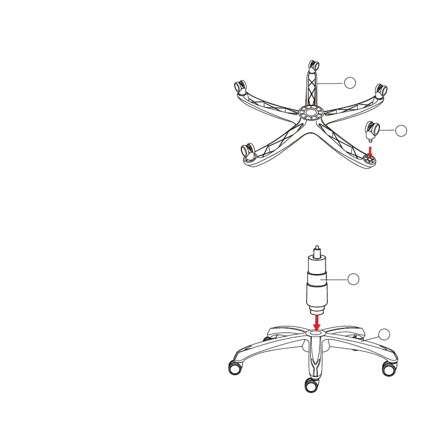Placez la base en étoile (B) à l’envers et enfoncez les 5