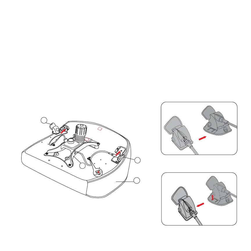 *Note: Fix the cable for the seat plate into the plastic clips attached to the bottom of the seat cushion.