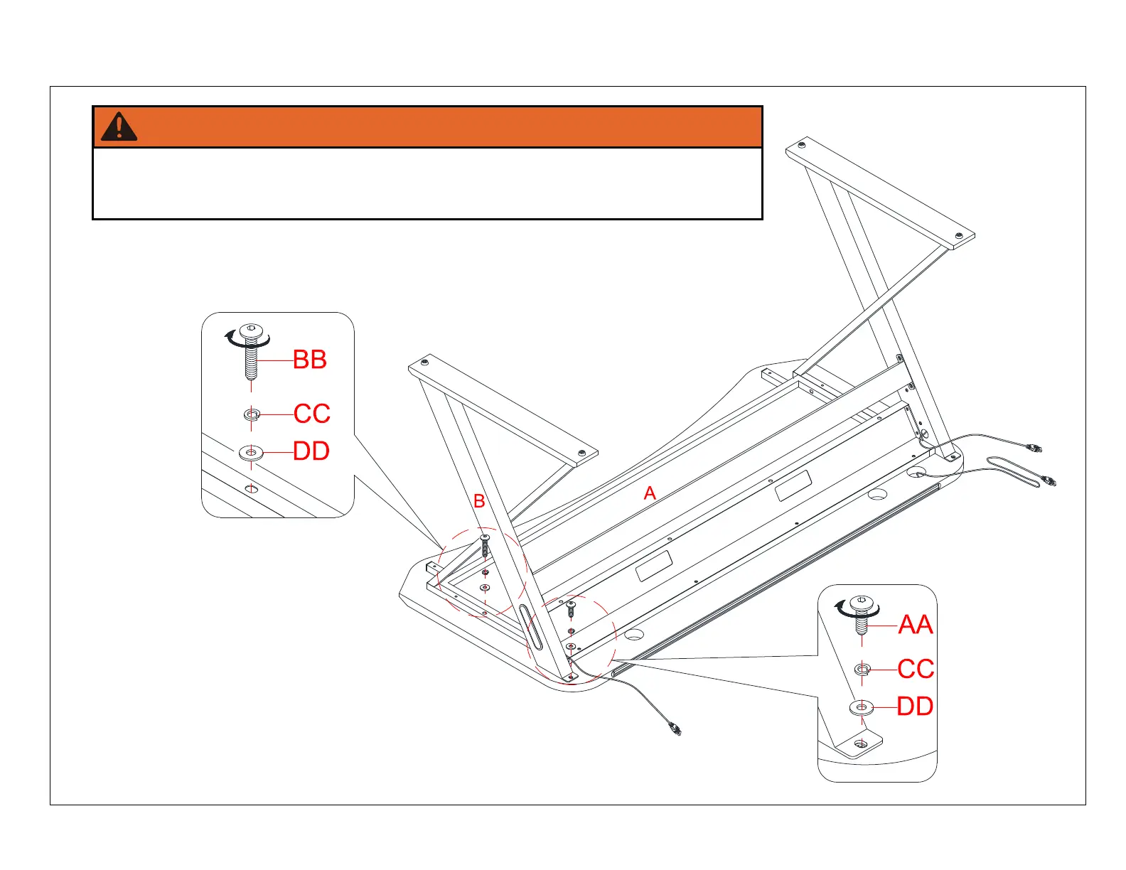 Be careful to use the proper bolts to prevent damage to the desk top.