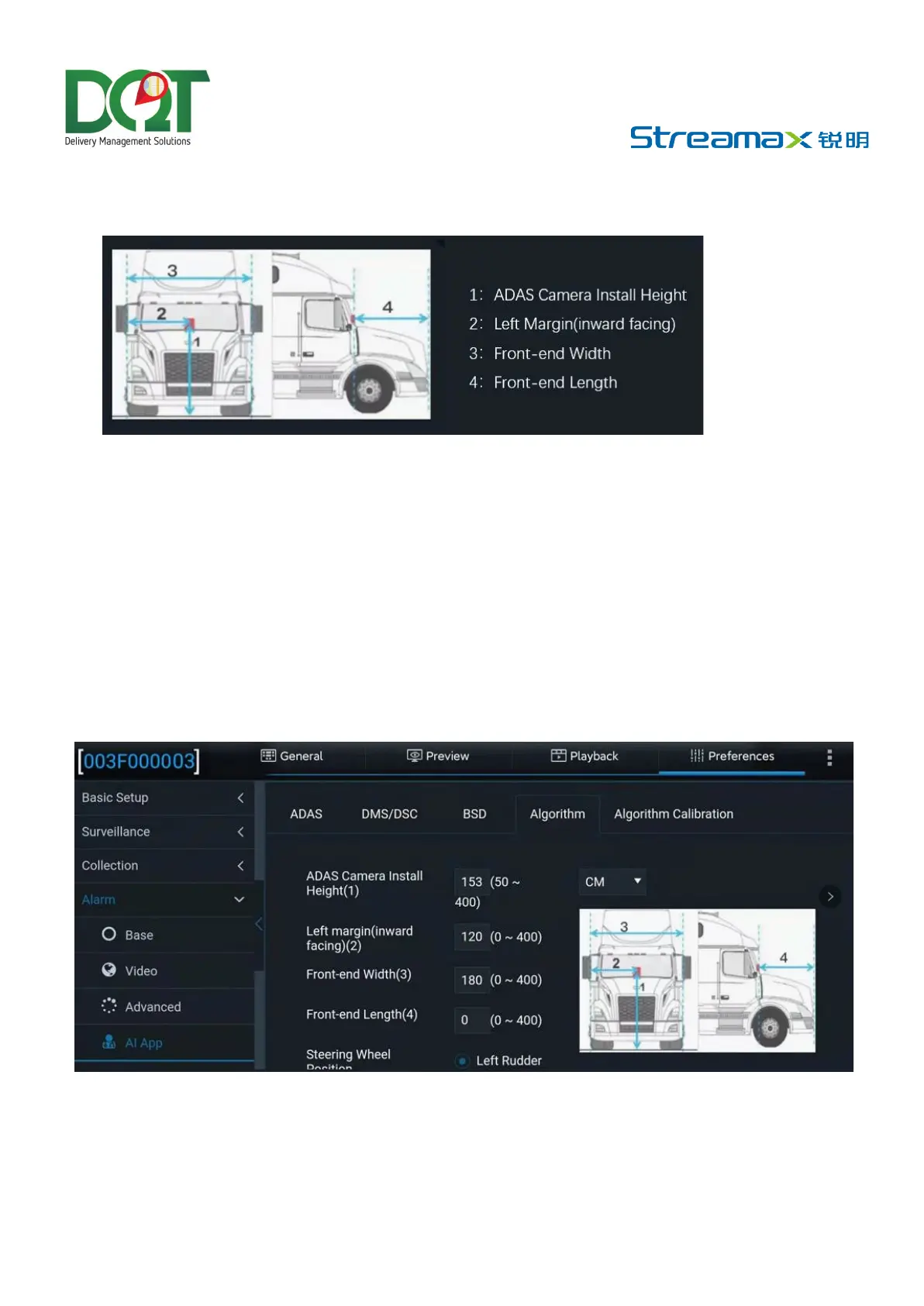 front length (the horizontal distance from the ADAS lens to the license plate). Refer to the figure