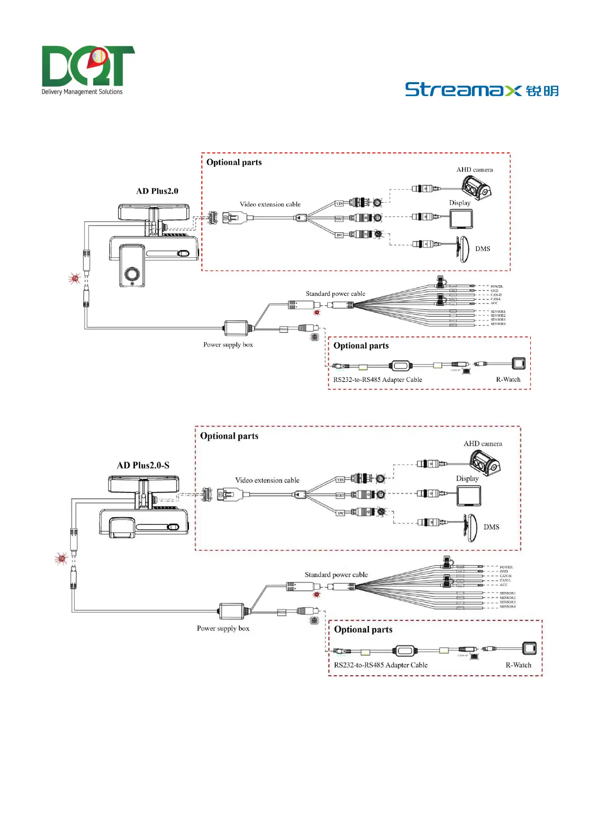 DQ Technology Streamax AD Plus2.0 - Schematic Diagram of System Connection-Power Supply through Standard Power Cable