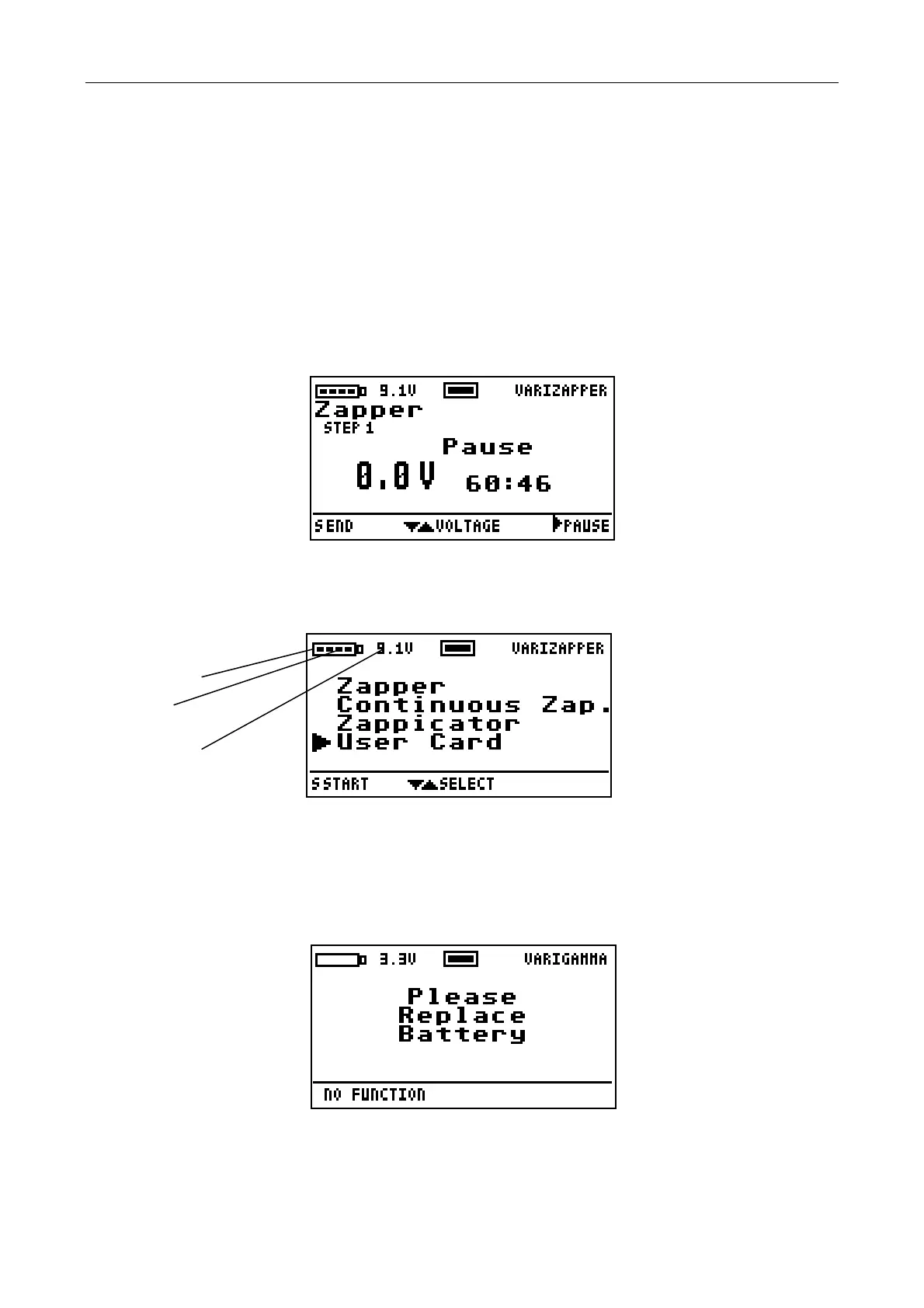 will appear. Now the VariZapper can only be turned off. After 10 seconds, the device shuts itself off.