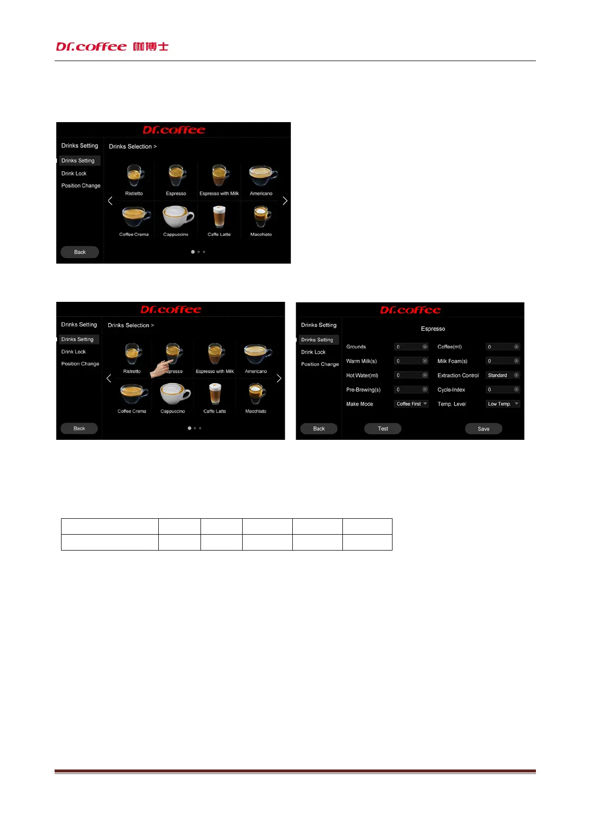 The amount of coffee flowing out, unit :ml. setting level: See the screen numerical on the interface, different beverage with different beverage value limits.