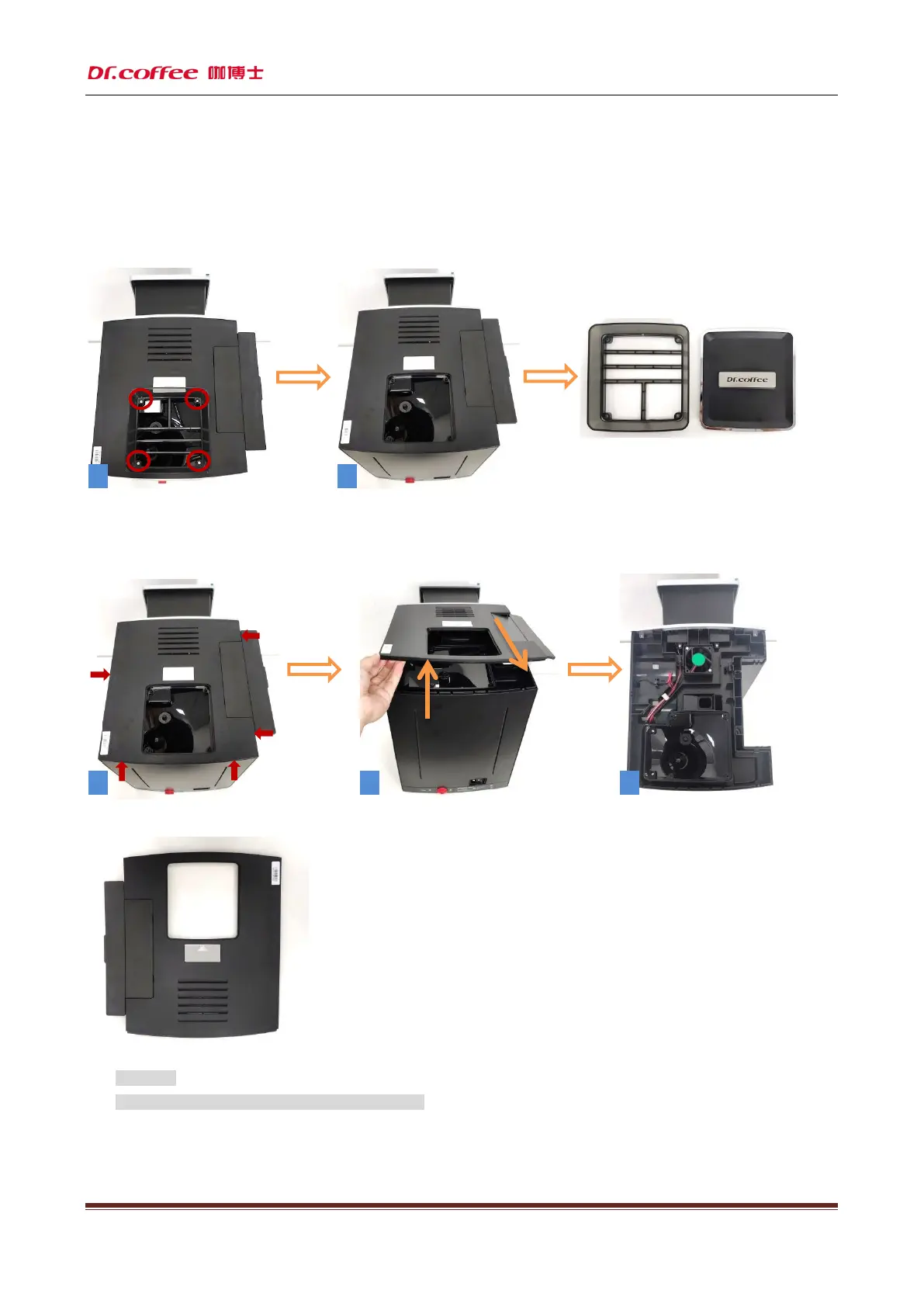 Step1:First unscrew (as shown in Figure 1) the position shown by the red circle, the four fixing screws of the coffee bean container, and then remove