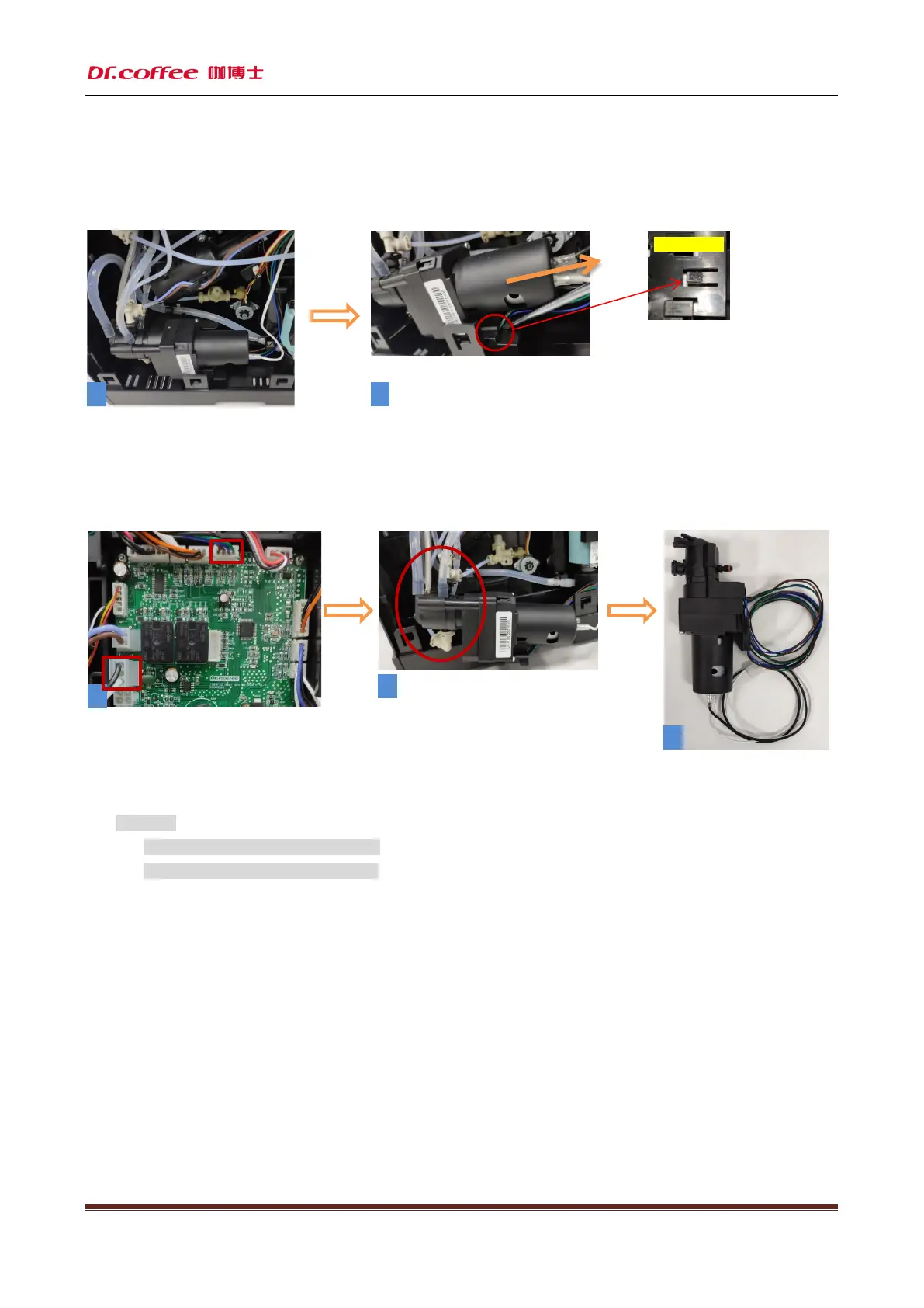 Step2:Unplug the two wiring plugs by the arrow, unplug the hose and water pipe connected to the red circle, and finally take out the split valve and