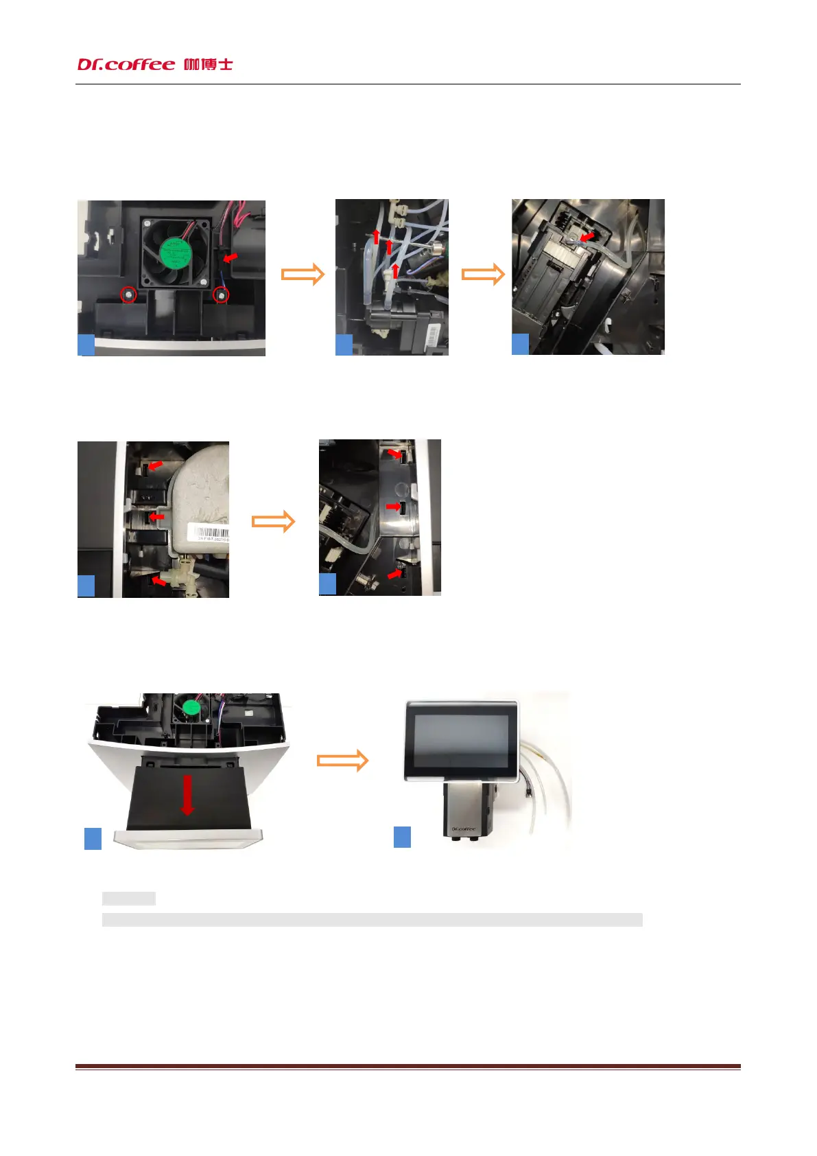 Step1:First unplug the wiring plug at the position indicated by the arrow, then unscrew the two fixing screws at the position marked by the red circle , and
