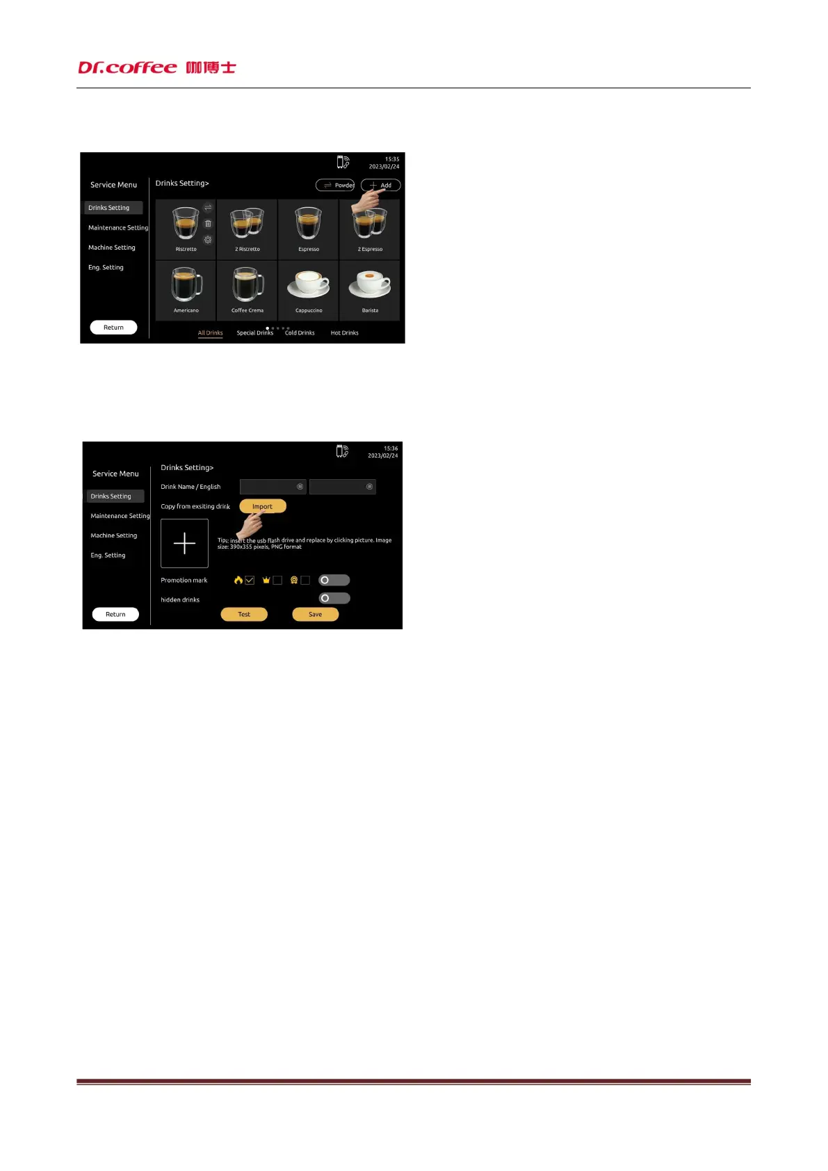 Method two:Click “Import”, select the exist drinks parameter,can modify the parameter after creating new drinks.